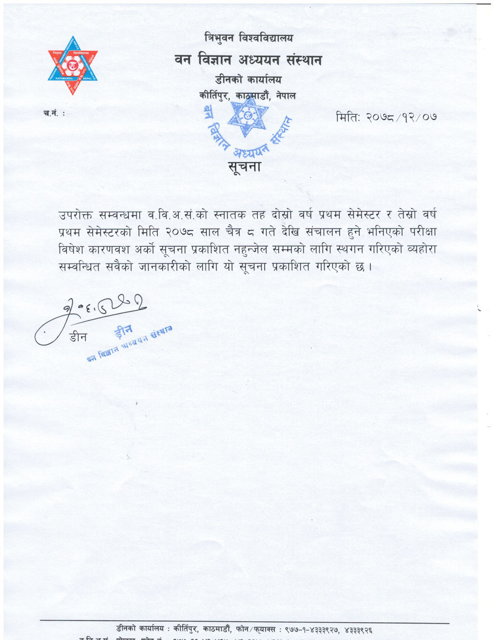 परीक्षा स्थगन सम्वन्धी सुचना
