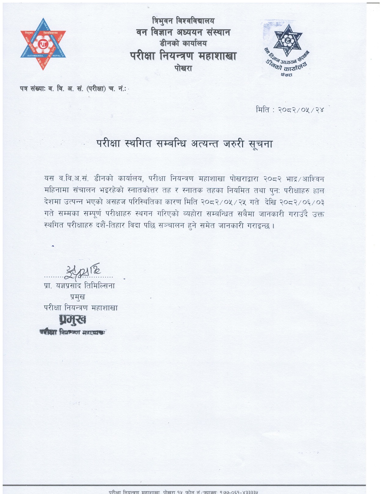परीक्षा स्थगित सम्बन्धि अत्यन्त जरुरी सूचना
