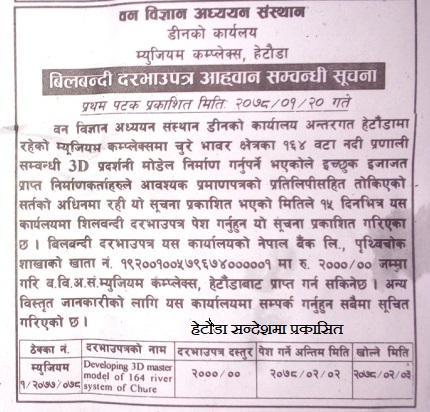 सिलवन्दी दरभाउपत्र पेश गर्ने सम्वन्धी सुचना