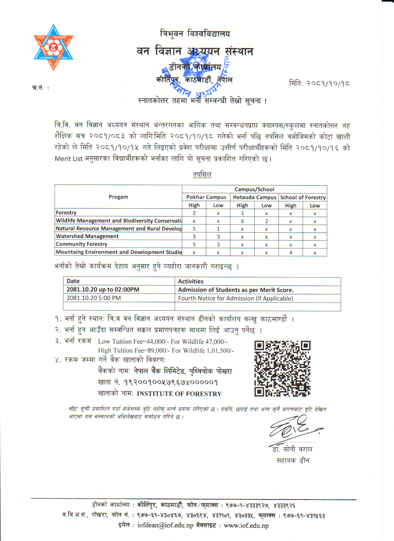 स्नातकोत्तर (M.Sc.) तहको शैक्षिक वर्ष २०८१-०८३ भर्ना सम्वन्धी तेस्रो सूचना ।