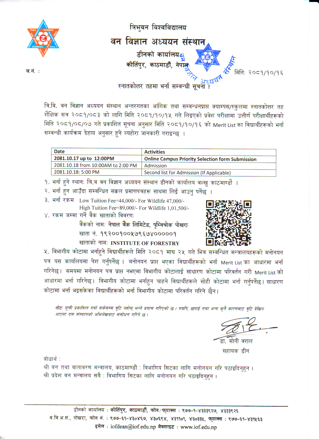 स्नातकोत्तर (M.Sc.) तहको शैक्षिक वर्ष २०८१-०८३ भर्ना सम्वन्धी सुचना ।