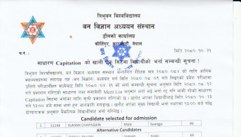 साधारण Capitation को खाली एक सिटमा विद्यार्थीको भर्ना सम्बन्धी सूचना