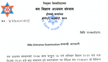 MSc Forestry तथा विभागिय/प्रोजेक्ट सिटमा अध्ययन गर्न चाहने विद्यार्थीहरूलाइ अत्यन्त जरूरी सुचना ।