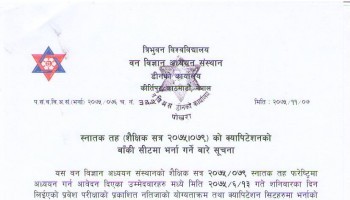 B.Sc. Entrance Examination Notice for General Capitation Seats in Hetauda Campus (2075/11/07)