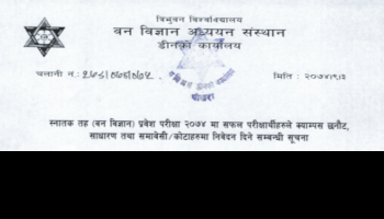 स्नातकोत्तर तह (M.Sc.) २०८२-०८४ काे भर्ना तेस्रो सूची प्रकाशन गरिएको ।