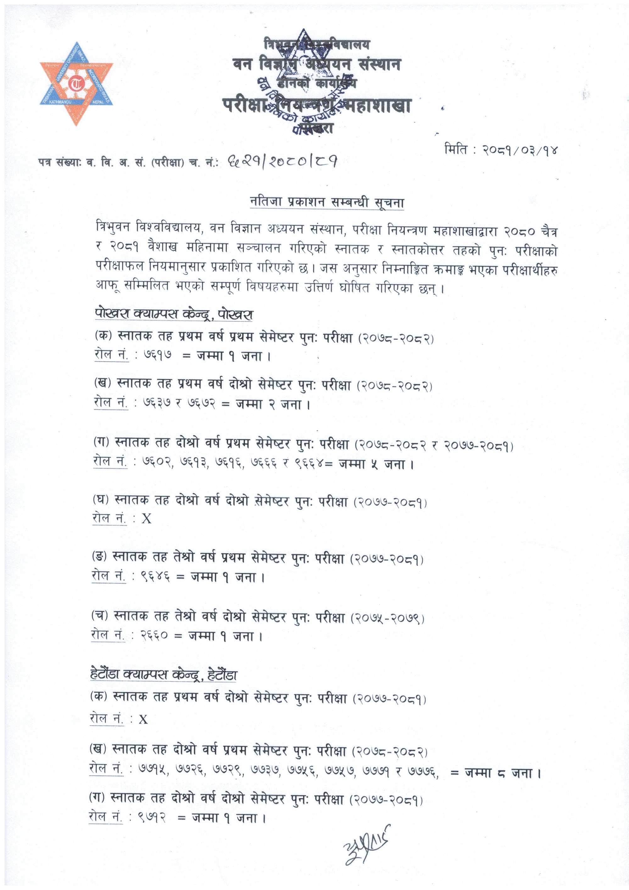B.Sc. & M.Sc. Make-up Examination Result Published (2081/03/14)