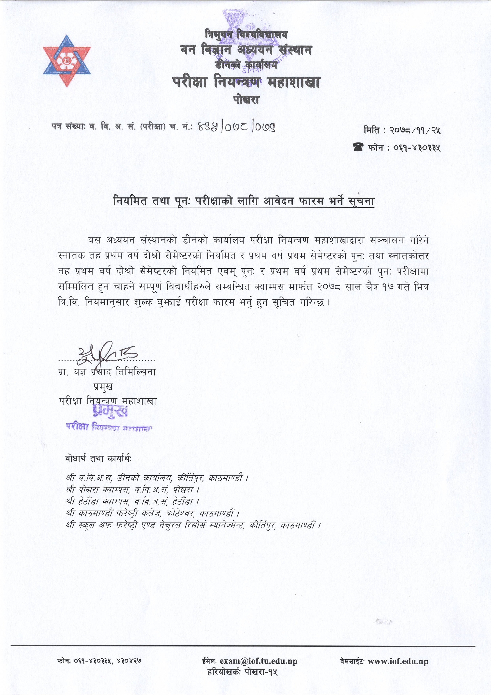 B.Sc. & M.Sc. Regular Examination Notice (2078/11/25)