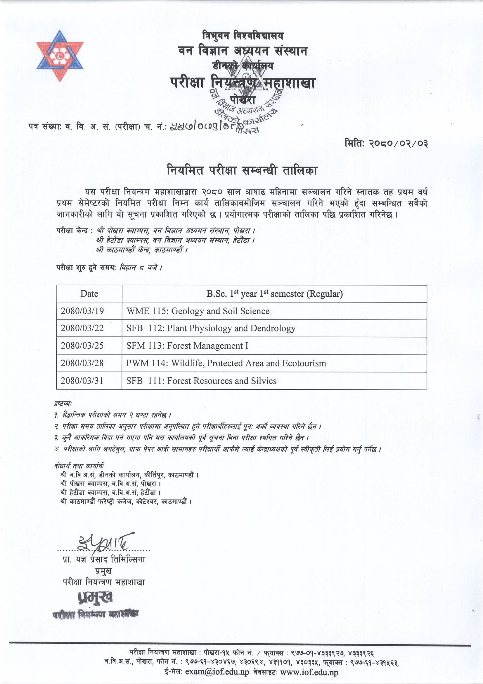 B.Sc. 1st year 1st sem. Routine Published (2080/02/03)