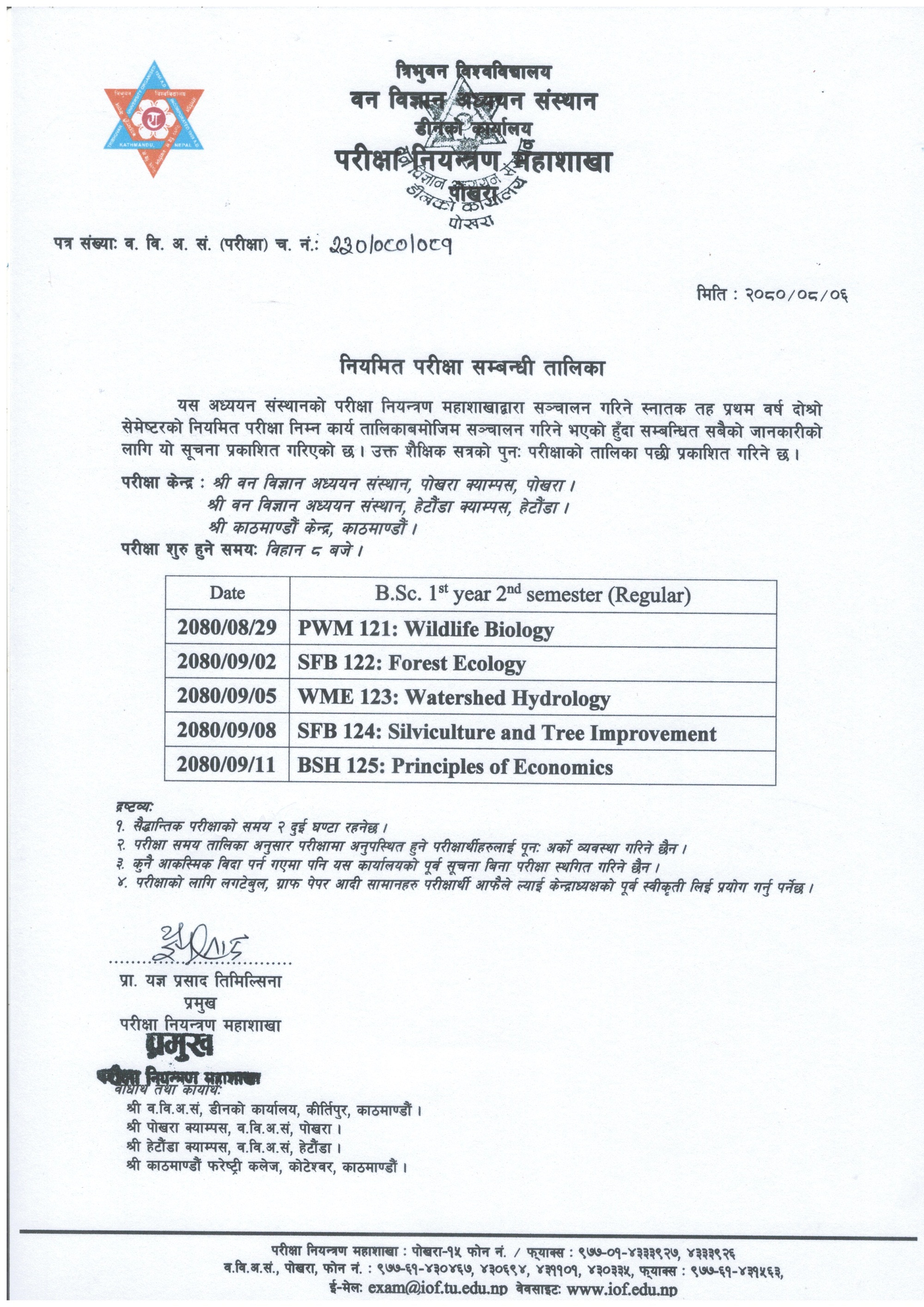 B.Sc. 1st year 2nd sem. Routine Published (2080/08/06)