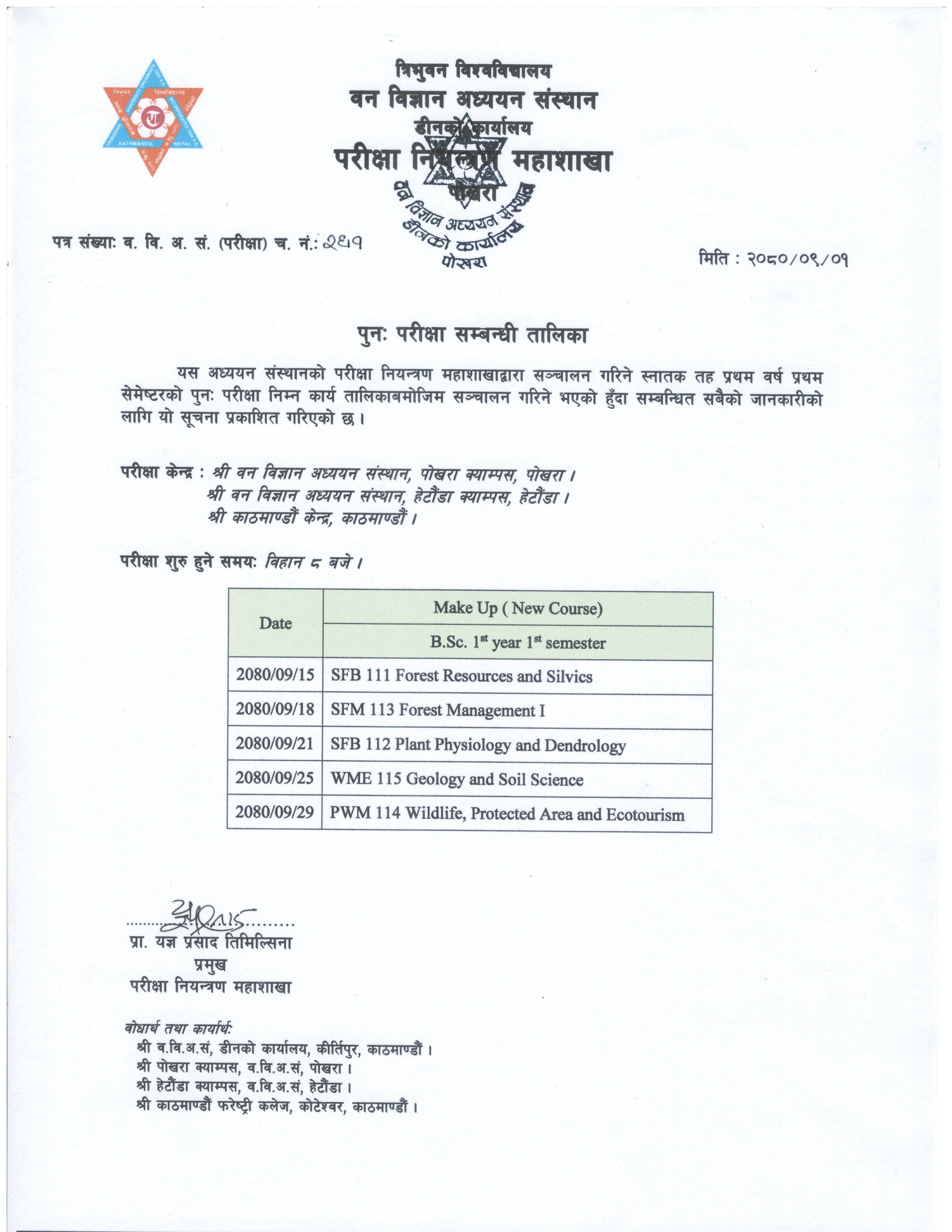B.Sc. 1st yr / 1st sem. Make-up Routine Published, 2080/09/01