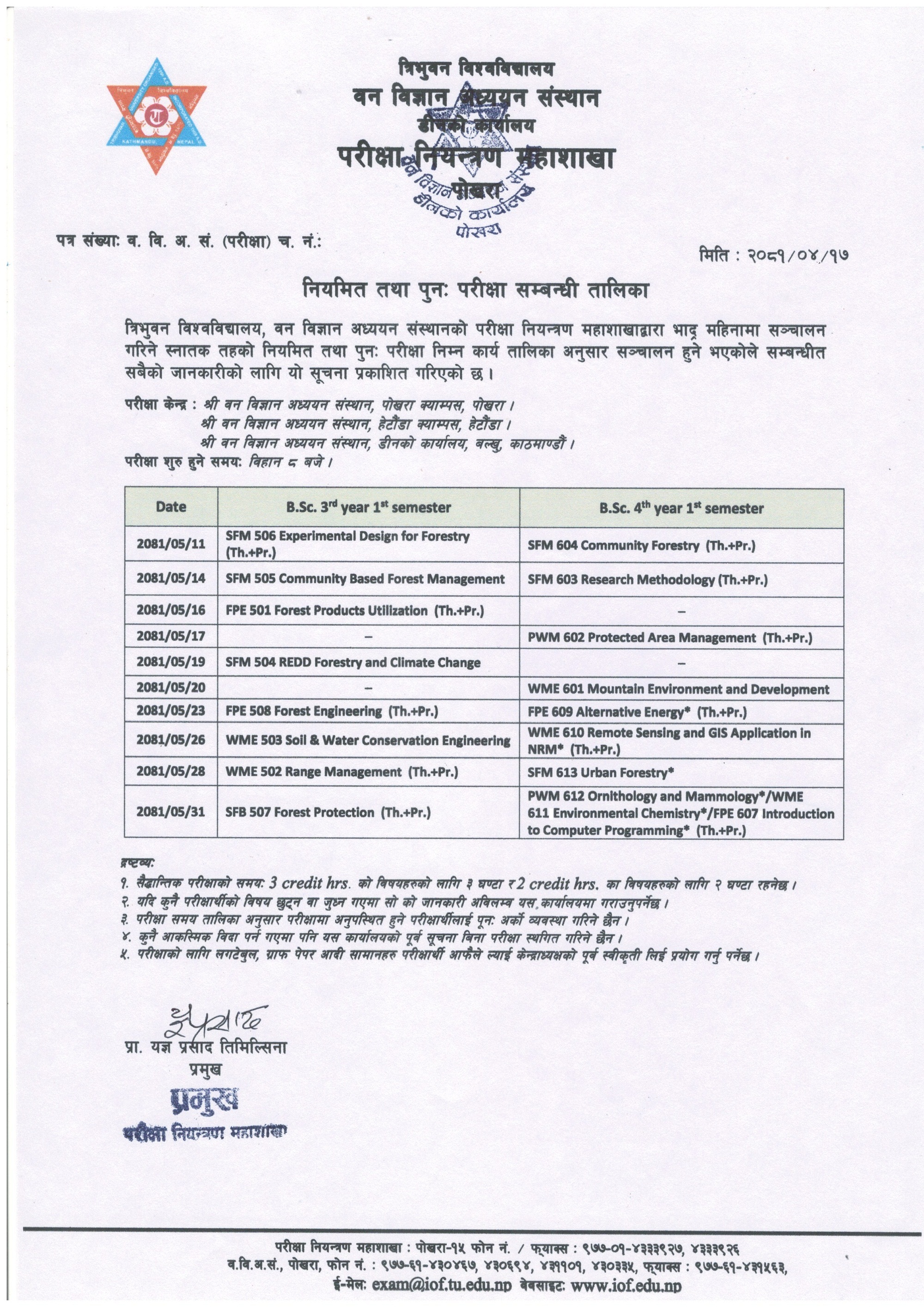 B.Sc 1st/2nd Regular & M.Sc. Make-up Examination Result Published (2082/09/25)