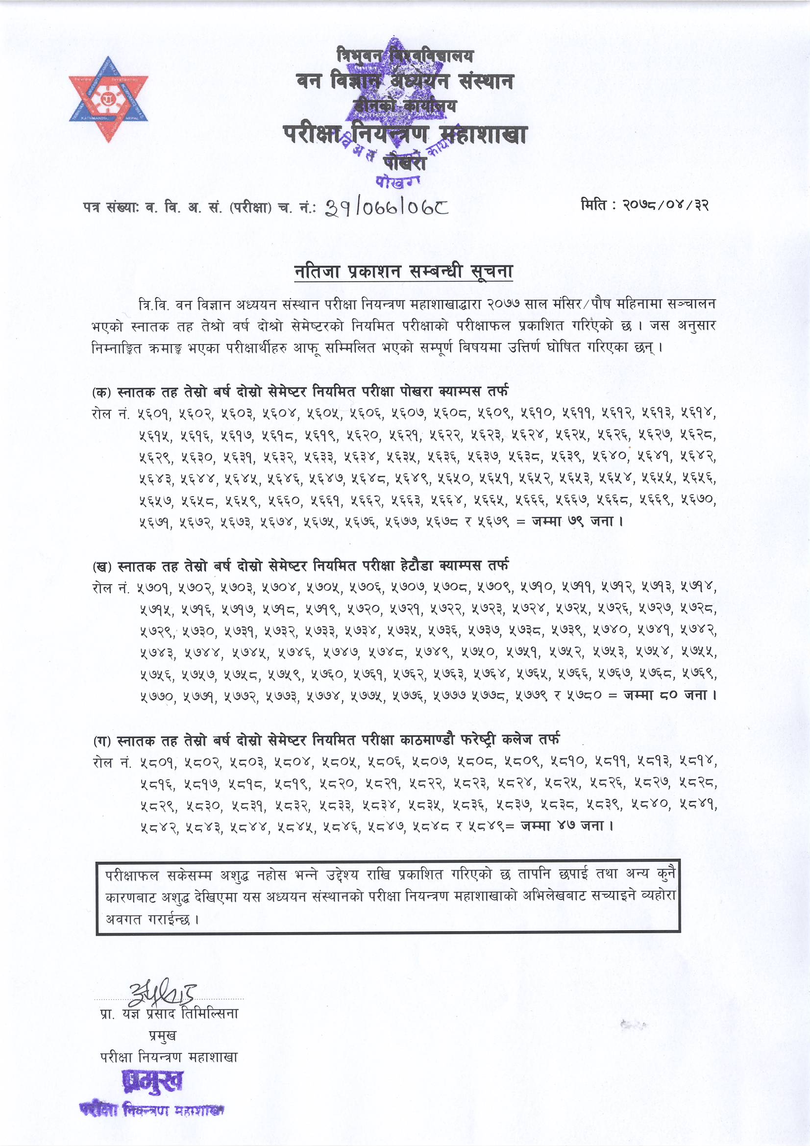 B.Sc. 3rd Year 2nd Sem. Result Published (2078/04/32)