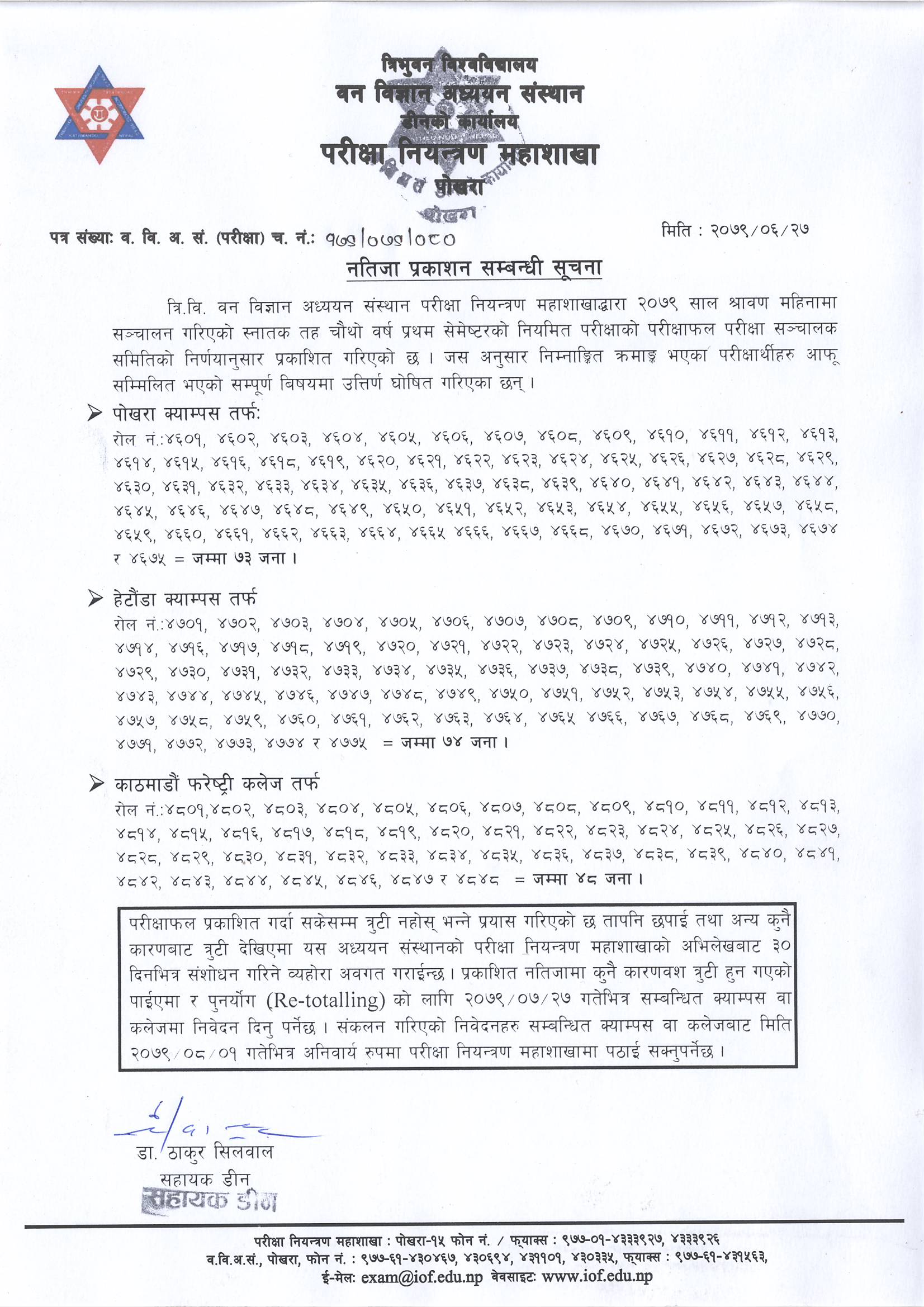 B.Sc. 4th Year 1st Semester Result Published (2079/06/27)