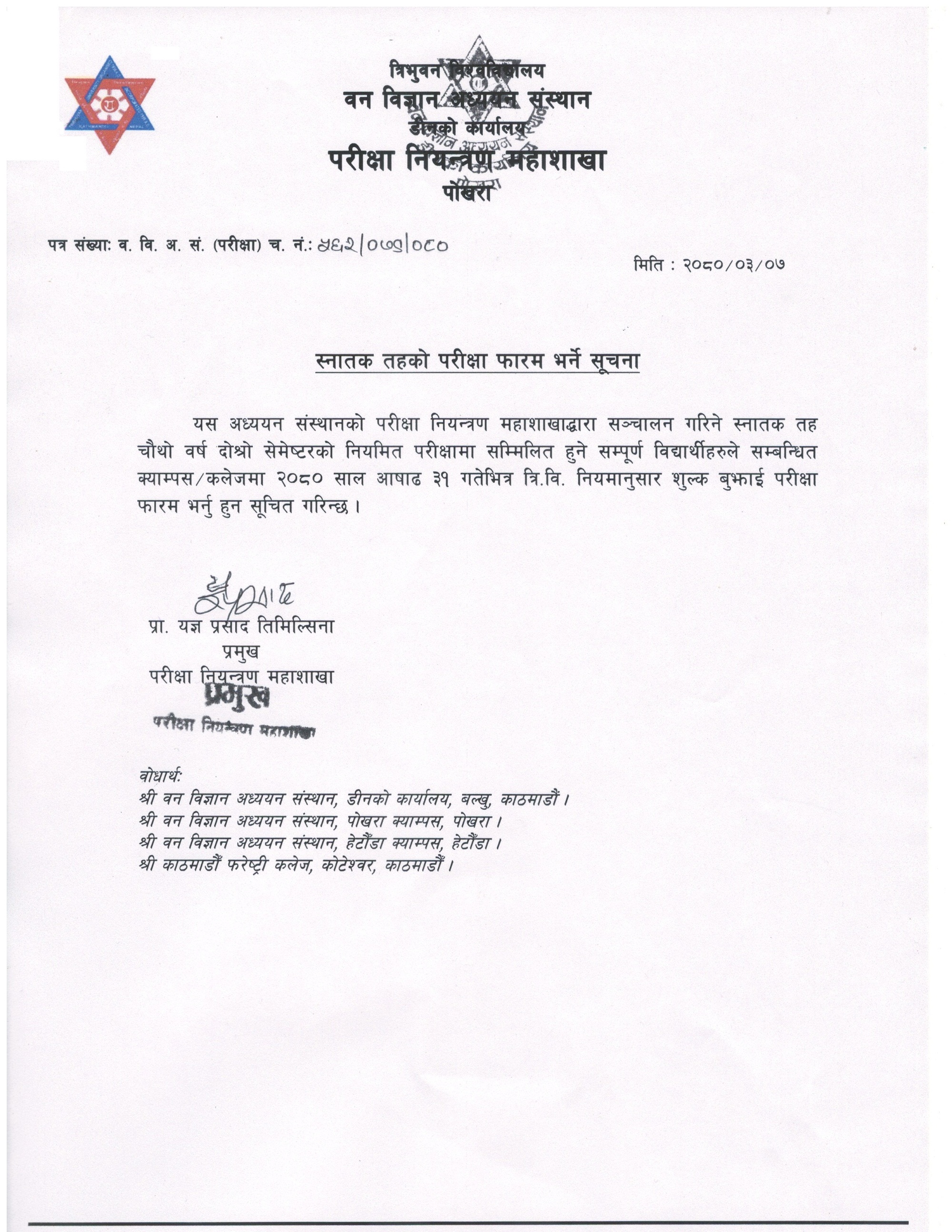 B.Sc. 4th year 2nd sem. Examination Form Notice (2080/03/07)