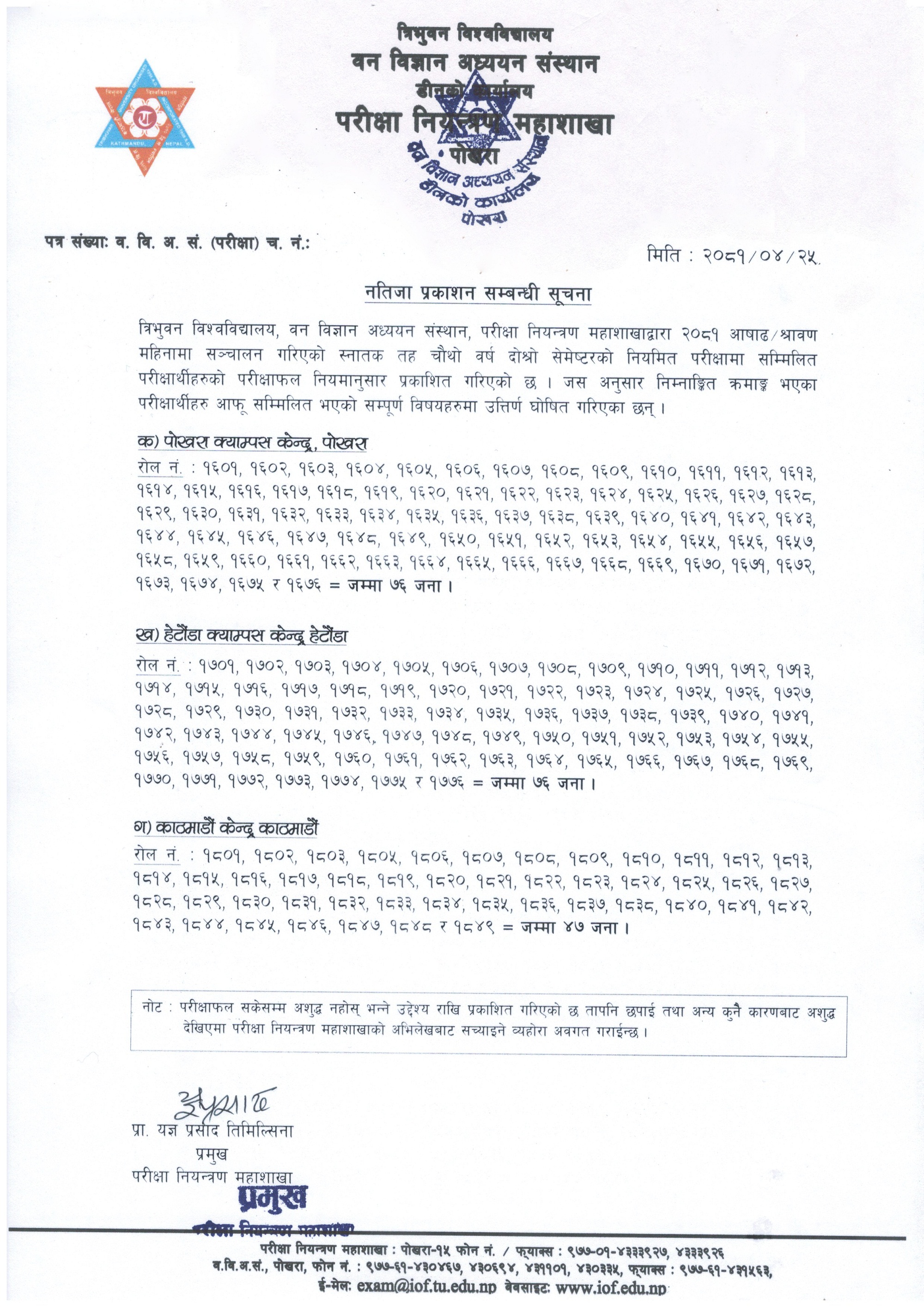 B.Sc. 4th year 2nd sem. Result Published (2081/04/25)