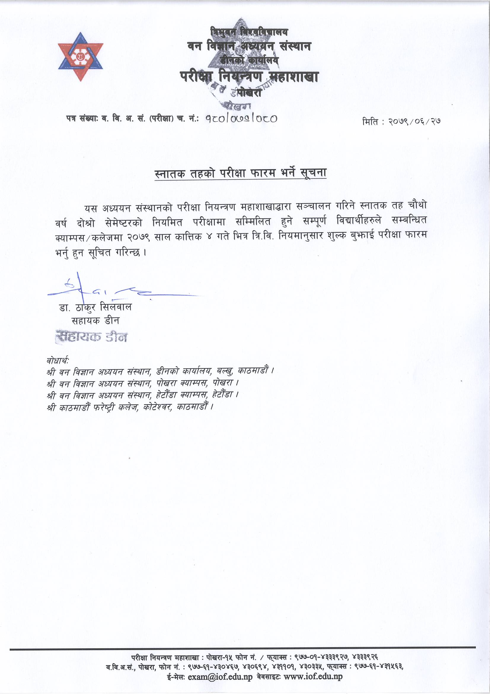 B.Sc. 4th Year 2nd Semester Form Notice (2079/06/27)