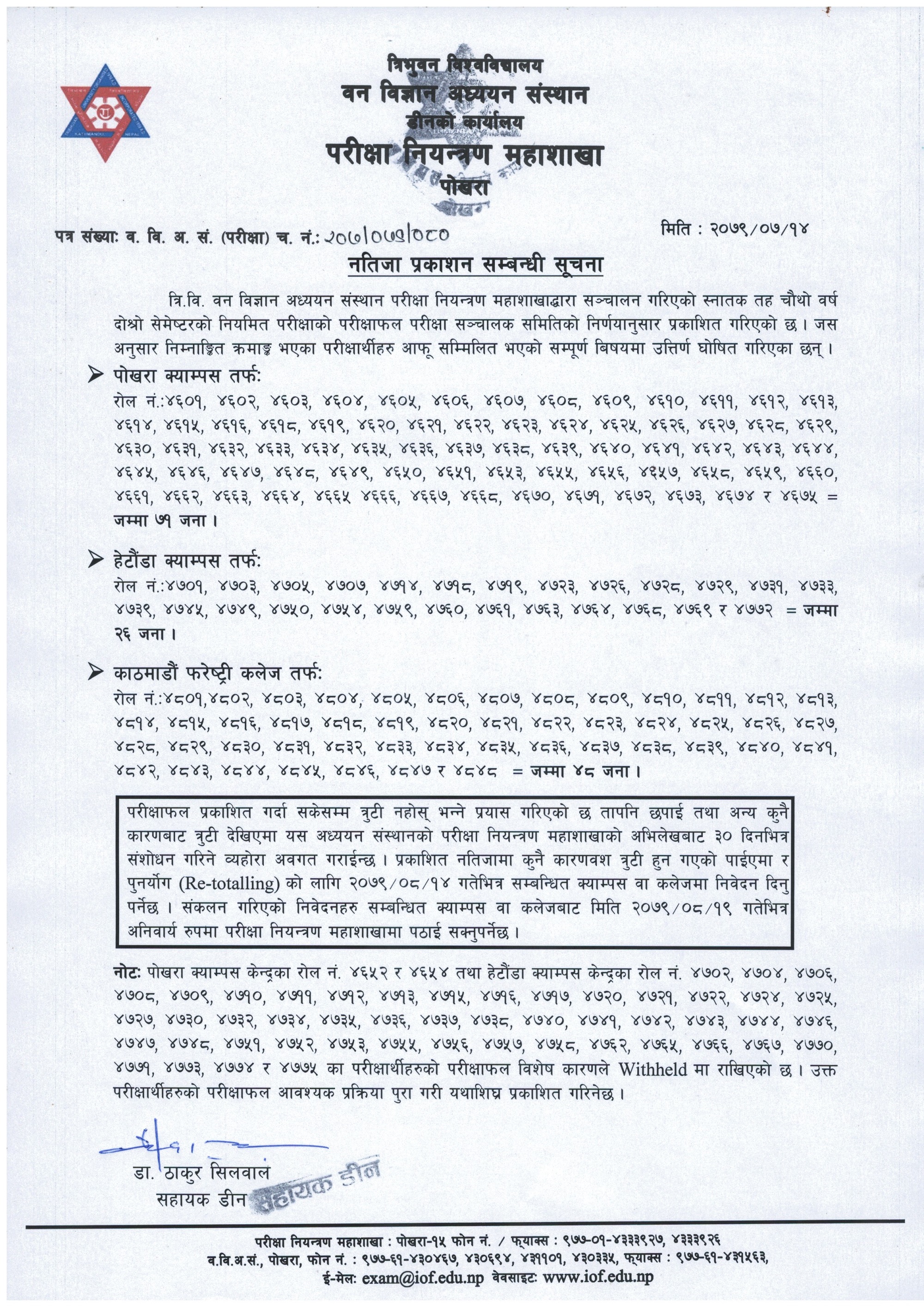 B.Sc. 4th year 2nd semester Result Publised (2079/07/14)