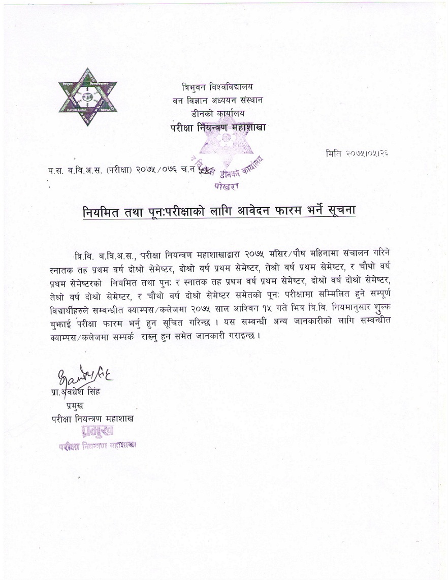 B.Sc. All Year's/Semester Regular & Make-Up Examination Form 2075