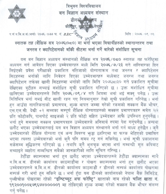 B.Sc. Entrance Examination Notice 2nd List Revised (2076/09/02)