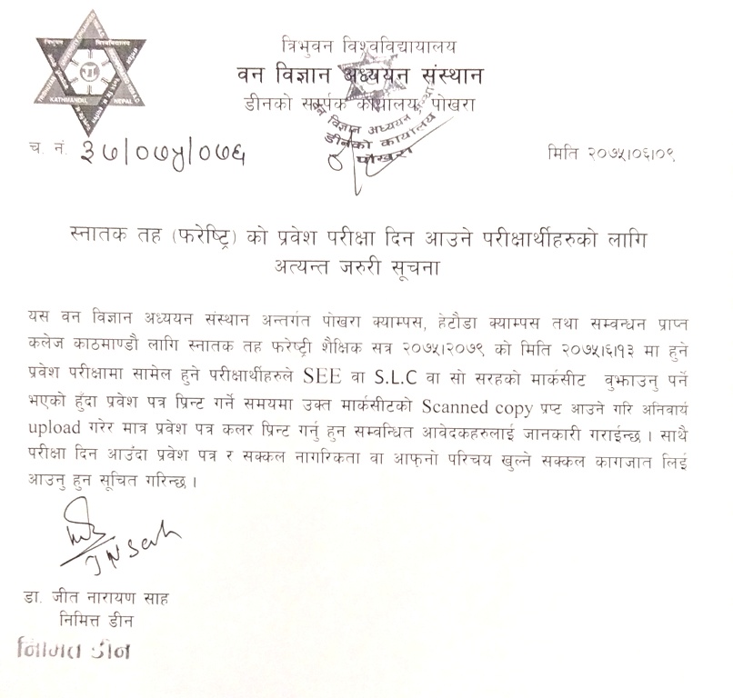 B.Sc. Entrance Online अावेदन फारम भरेका विद्यार्थीहरूलाइ अत्यन्त जरूरी सुचना ।