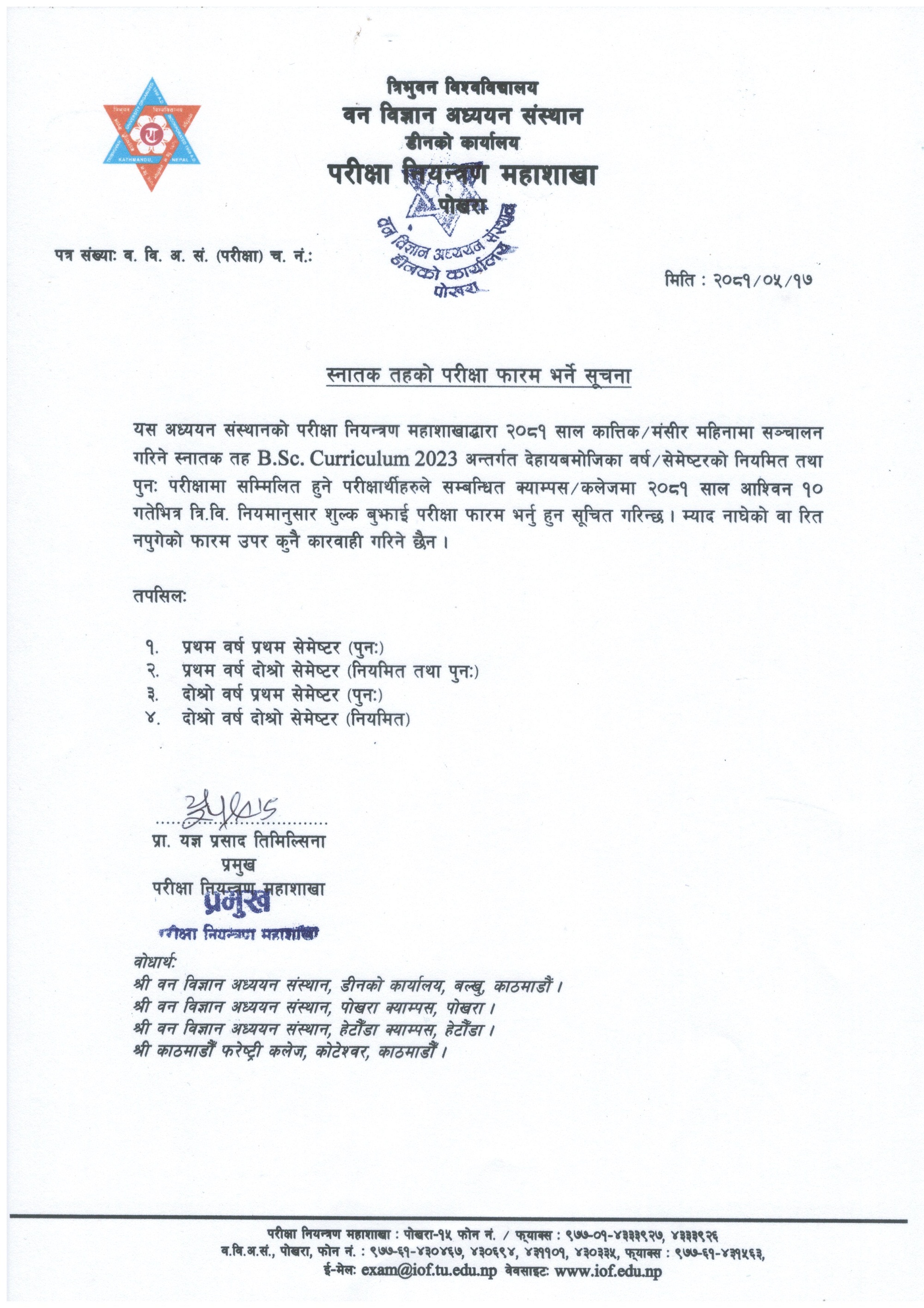 B.Sc. Examination Form Notice (2081/05/17)