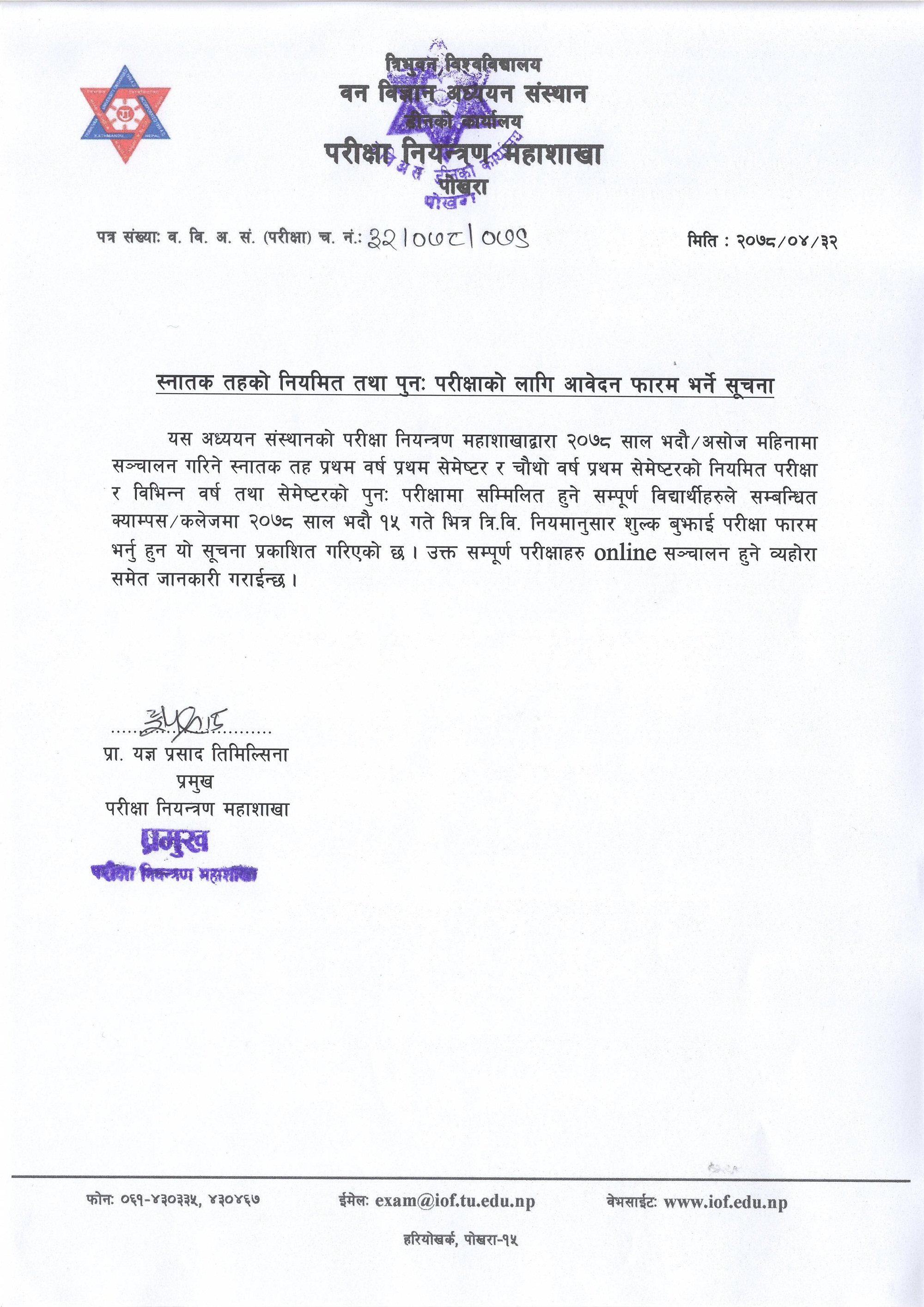 B.Sc. Examination Notice for Regular & Make-up Examination (2078/04/32)
