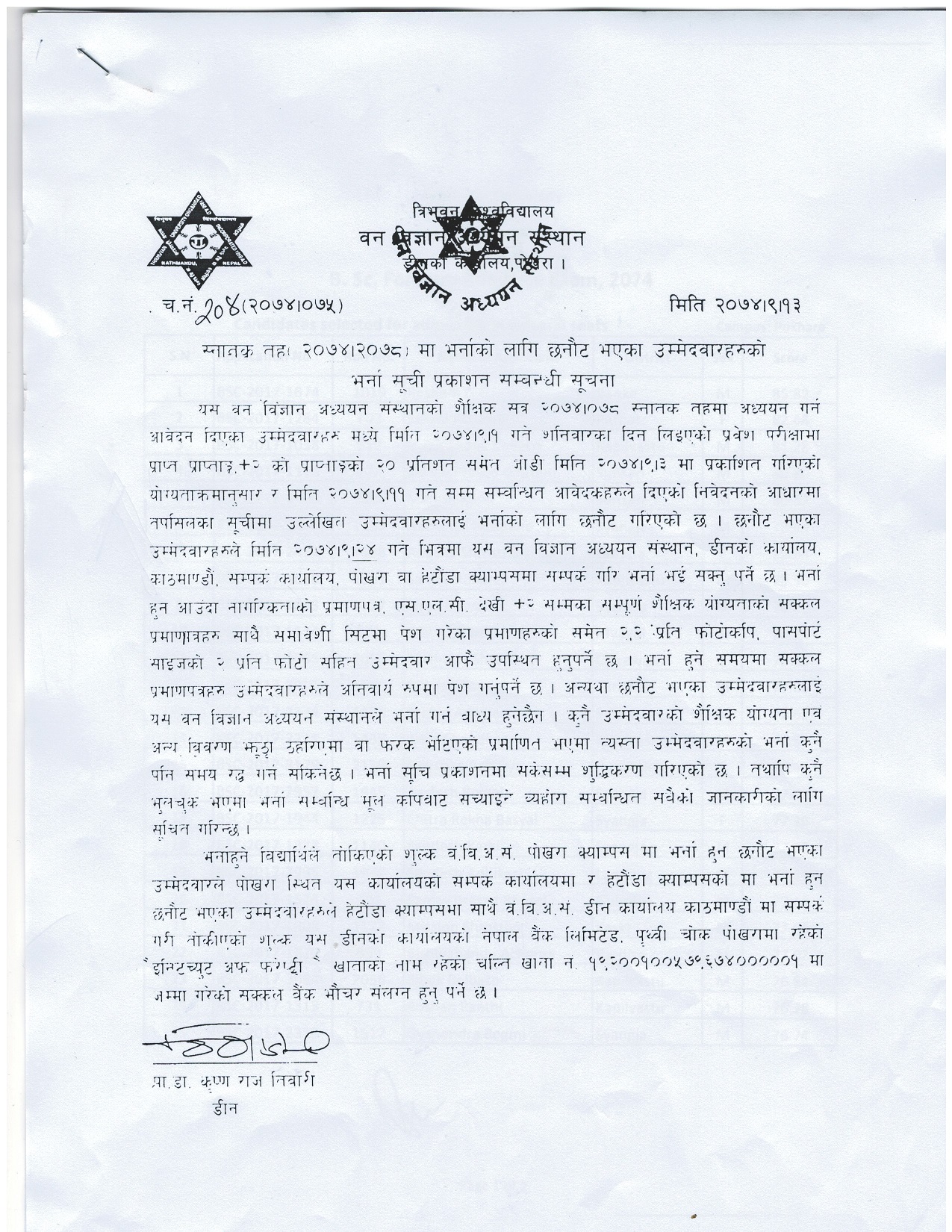 Click here to download B.Sc. Forestry Admission List for Pokhara Campus
