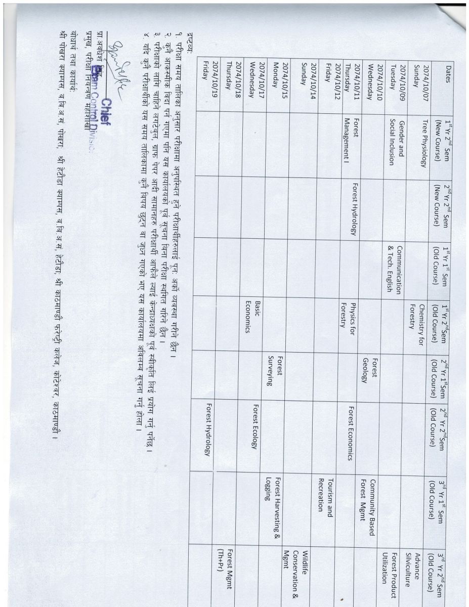 B.Sc. Forestry All Years Make-up Routine 2074