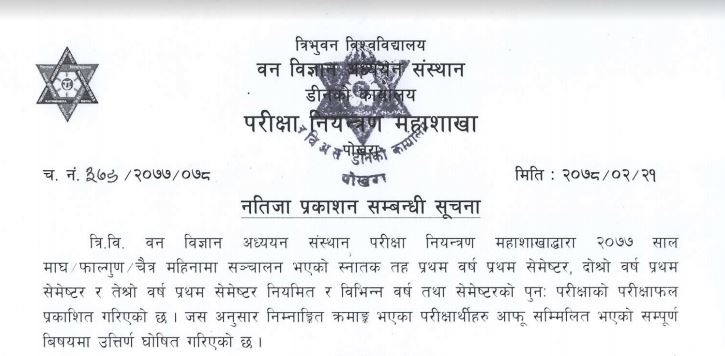 Click here to download/view B.Sc. Forestry Result 2078
