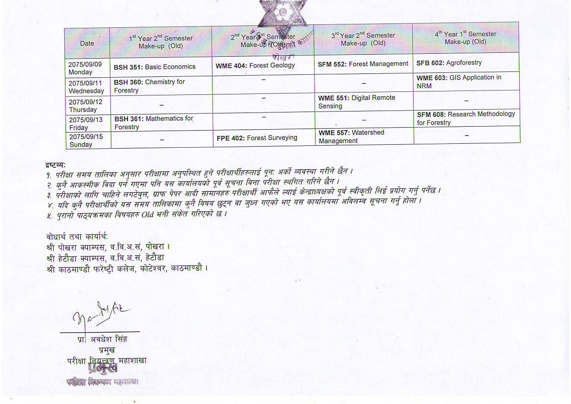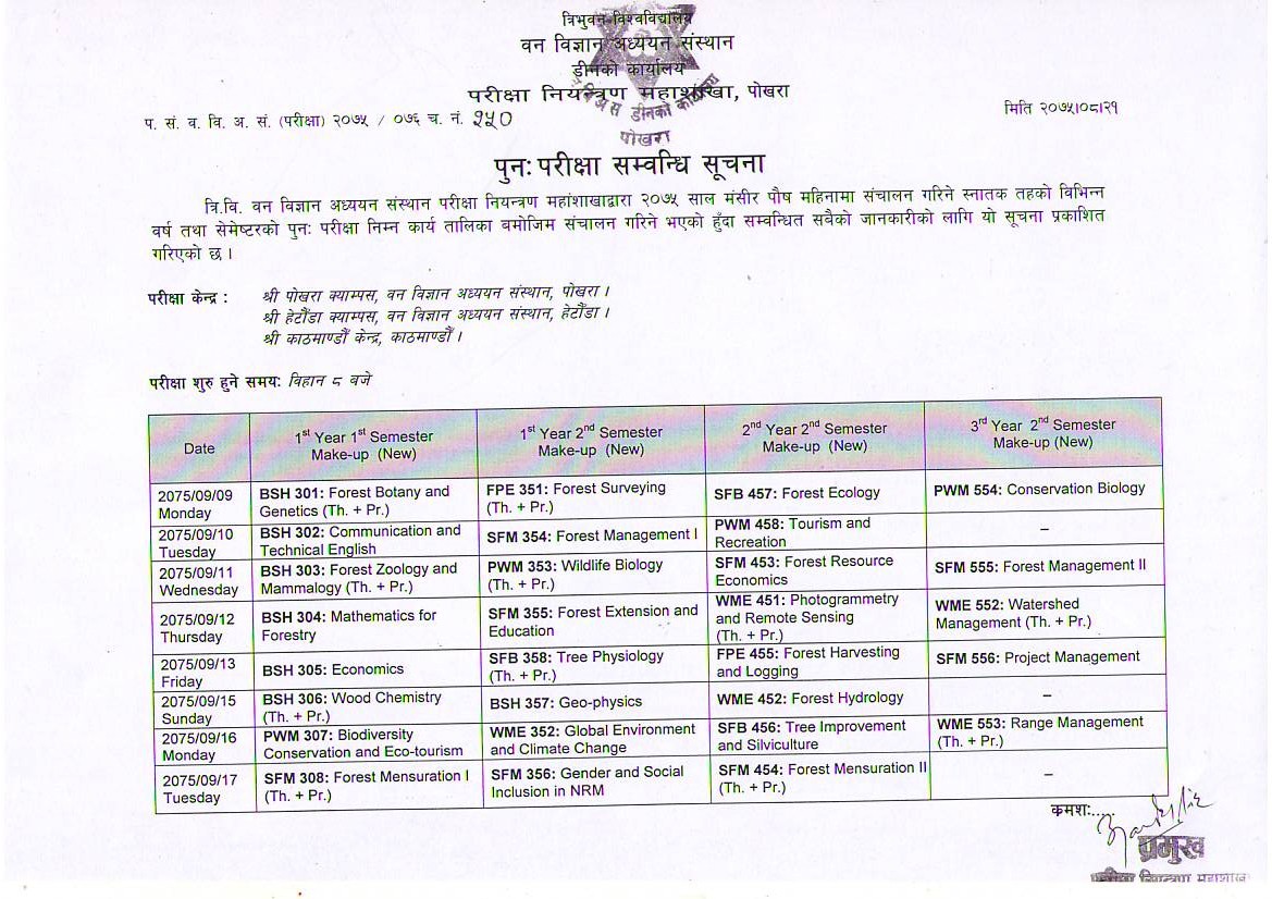 B.Sc. Make-Up Examination Notice 2075 Mangsir / Poush