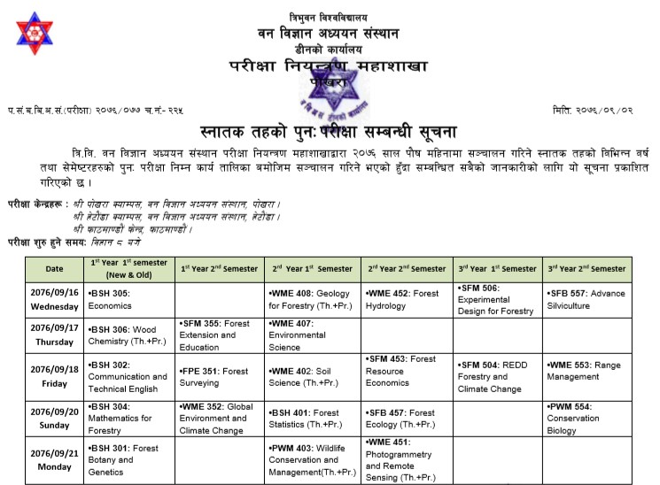B.Sc. Make-Up Examination Routine Published (2076/09/02)