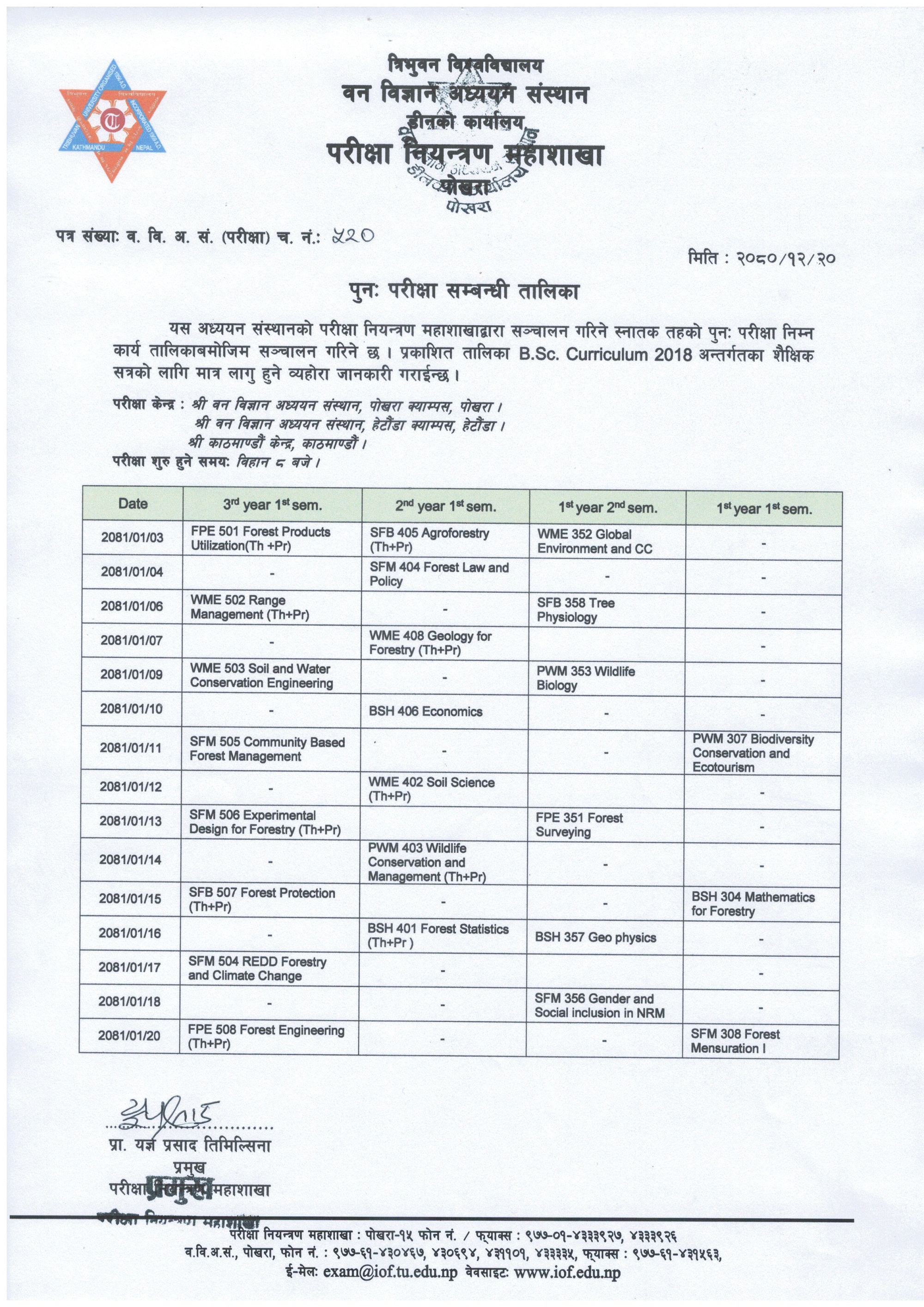 B.Sc. Make-up Examination Routine Published (2080/12/20)