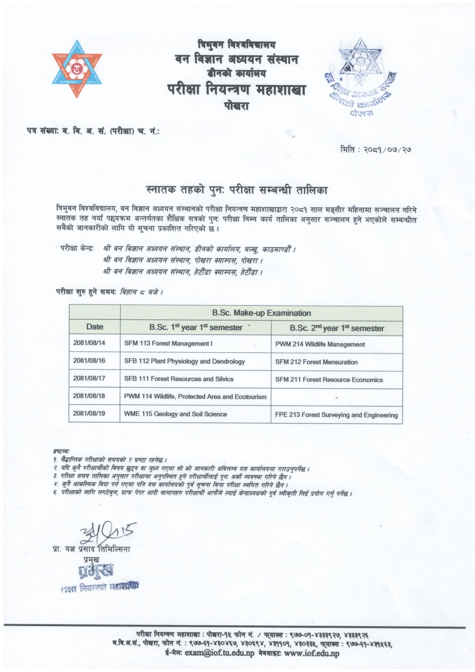B.Sc. Regular & Make-up Examination Form Fill-up Notice (2082/10/15)