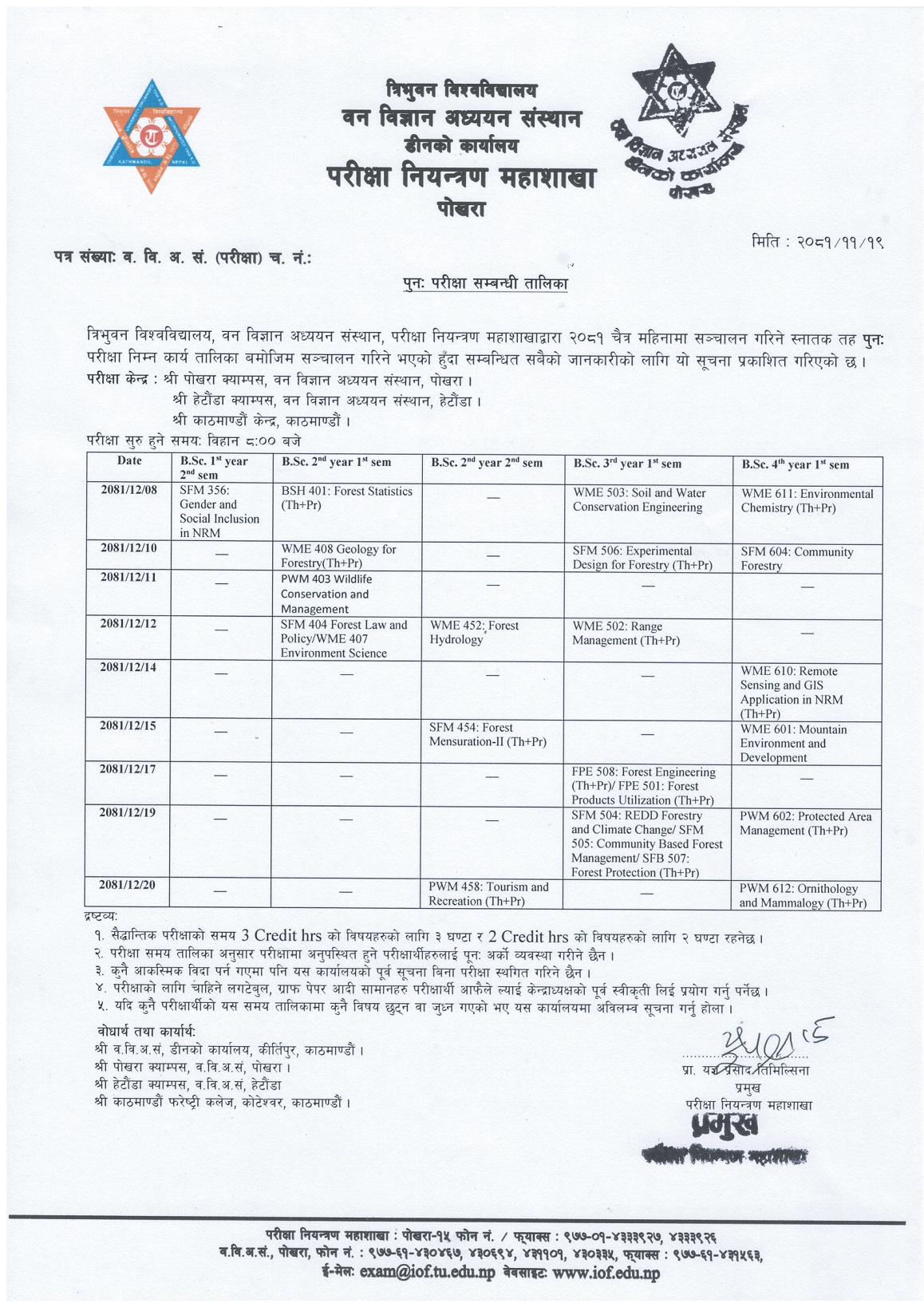 B.Sc. Makeup Examination Routine (2081/12/08)