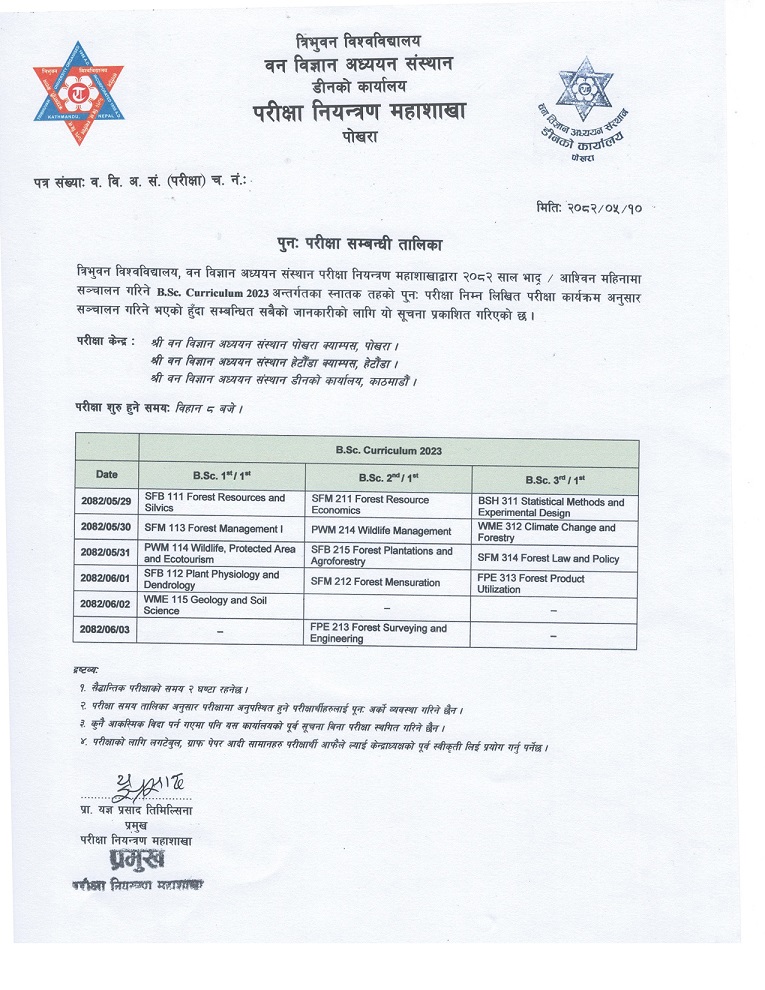 B.Sc 1st/2nd Regular & M.Sc. Make-up Examination Result Published (2082/09/25)