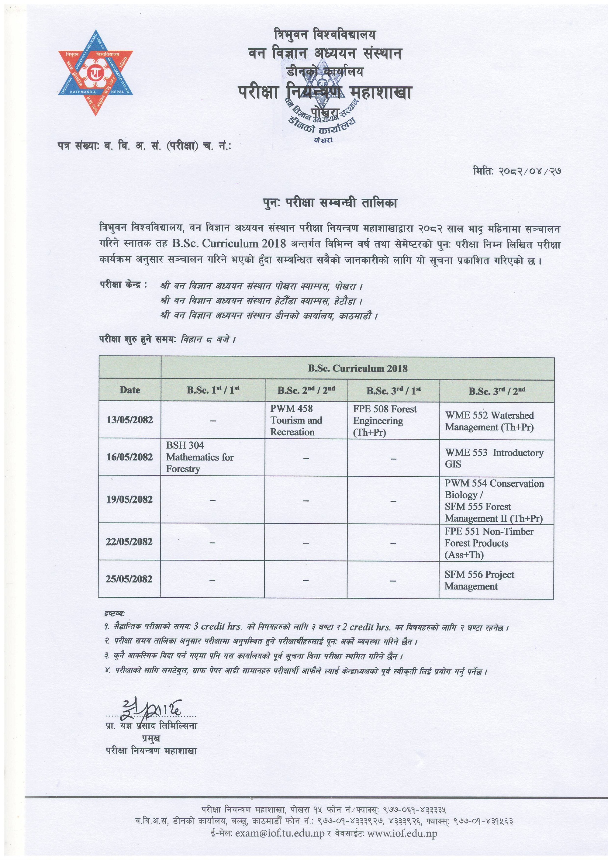 B.Sc 1st/2nd Regular & M.Sc. Make-up Examination Result Published (2082/09/25)