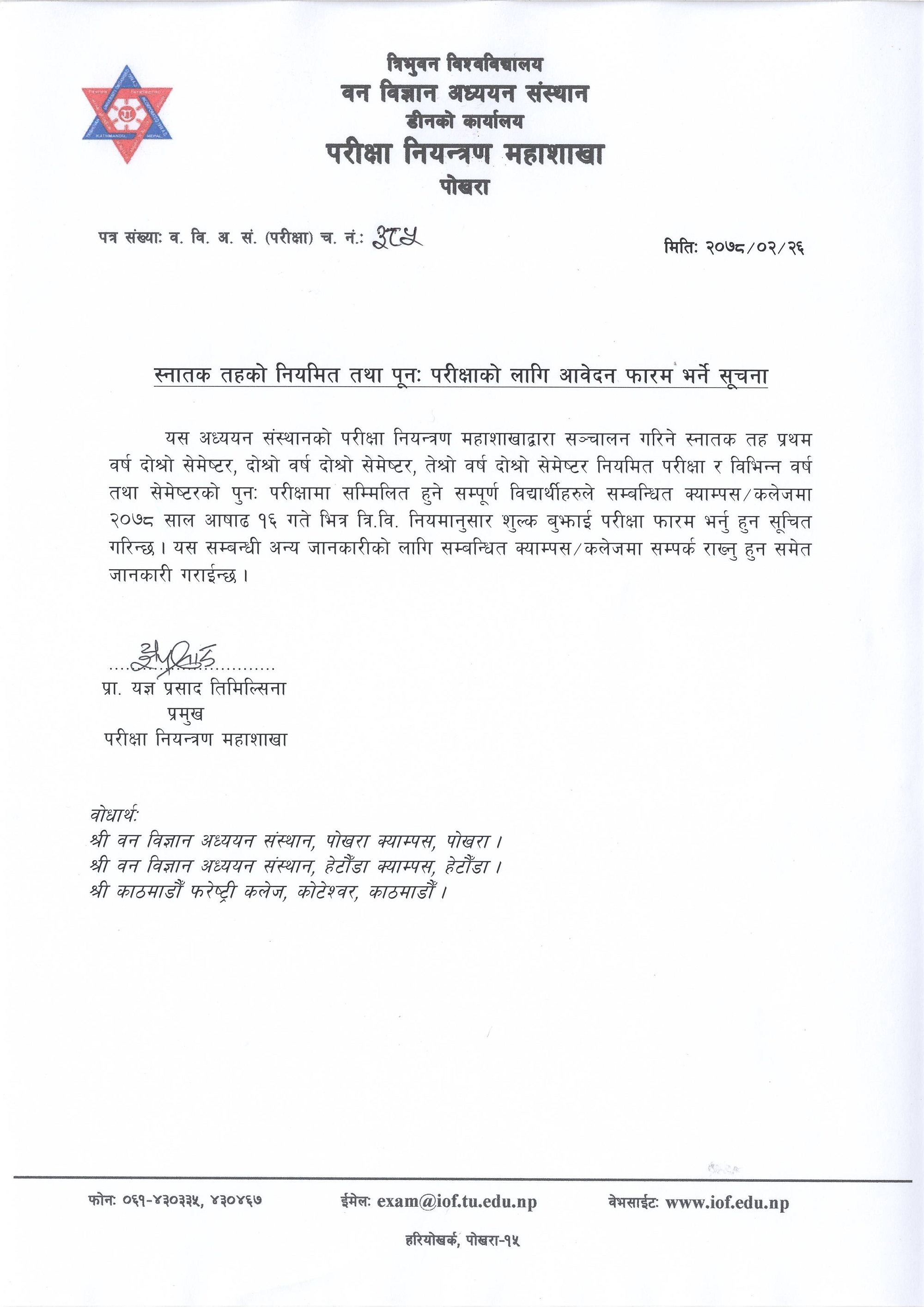 B.Sc. Regular & Make-up Examination Notice (2078/02/26)