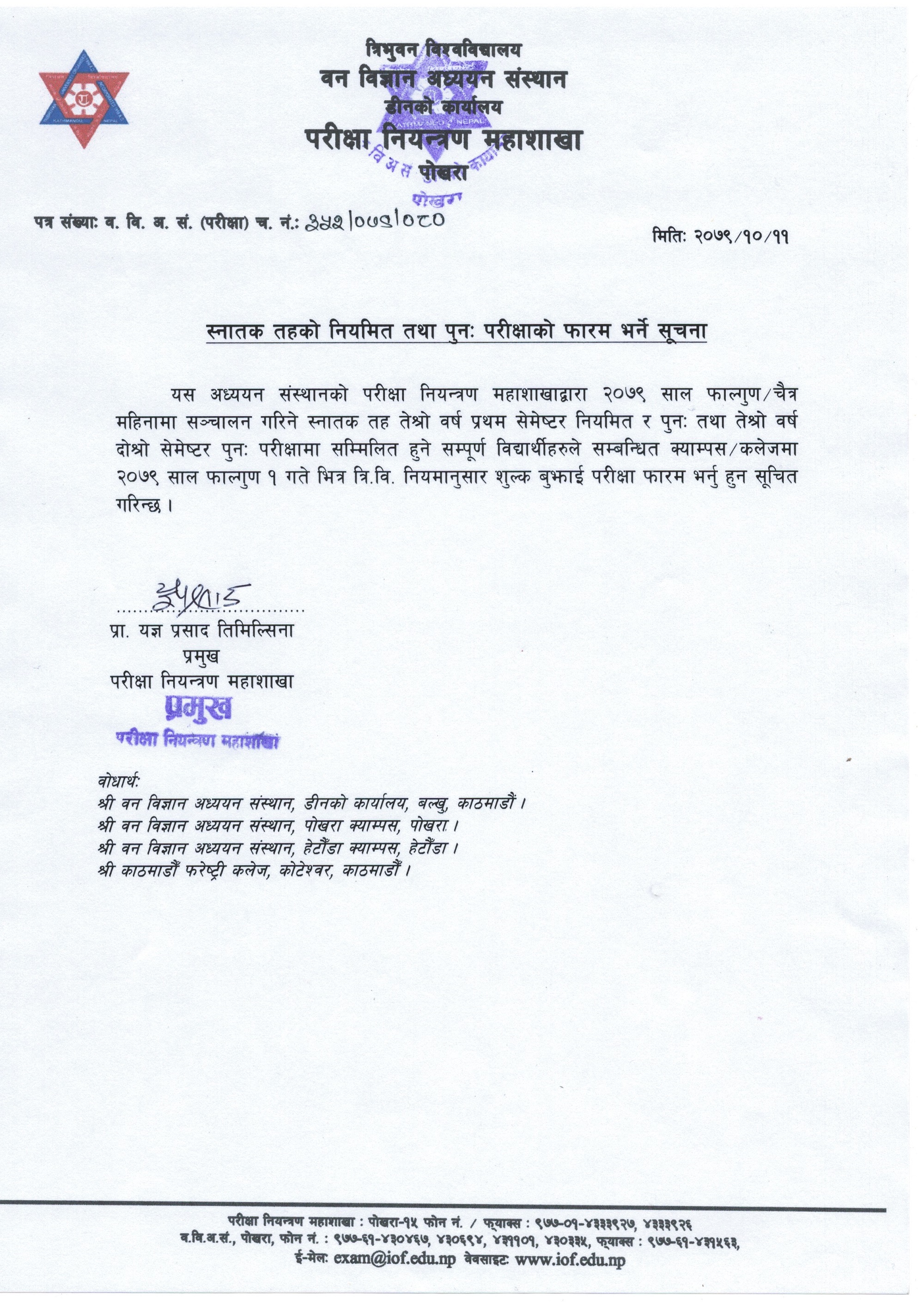 B.Sc. Regular & Make-up Examination Notice (2079/10/11)