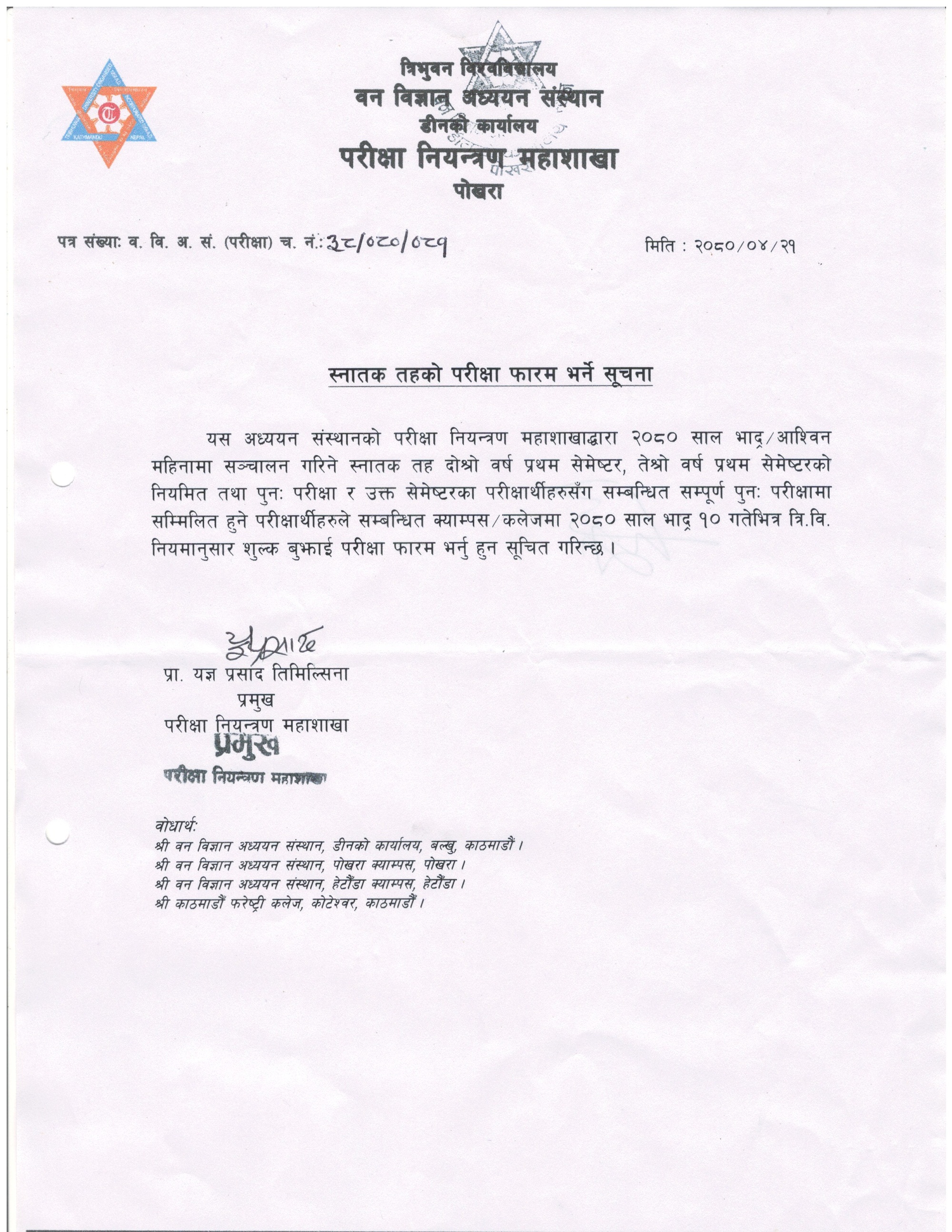 B.Sc. Regular & Make-up Examination Notice (2080/04/21)
