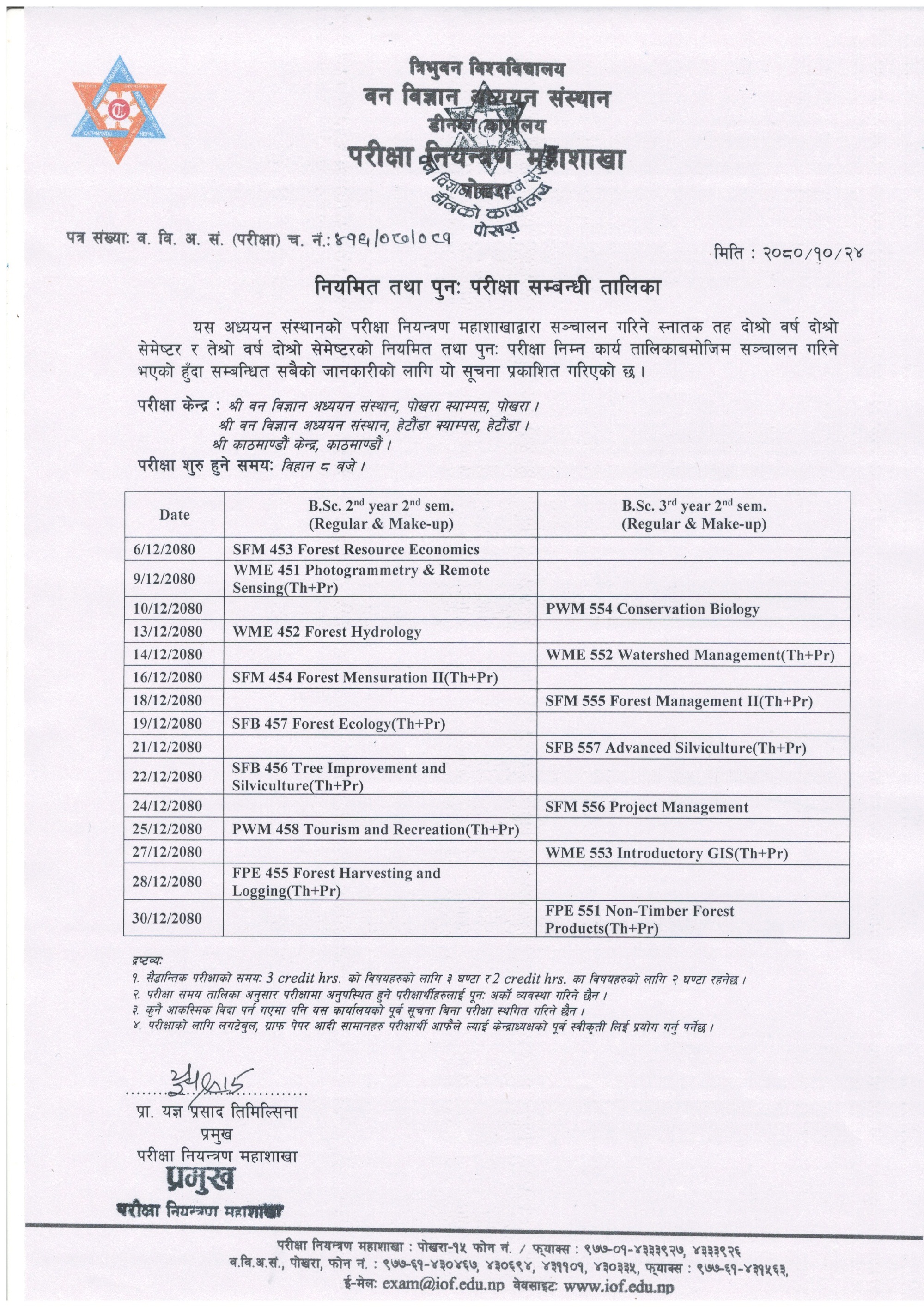 B.Sc. Regular & Make-up Examination Routine Published (2080/10/24)