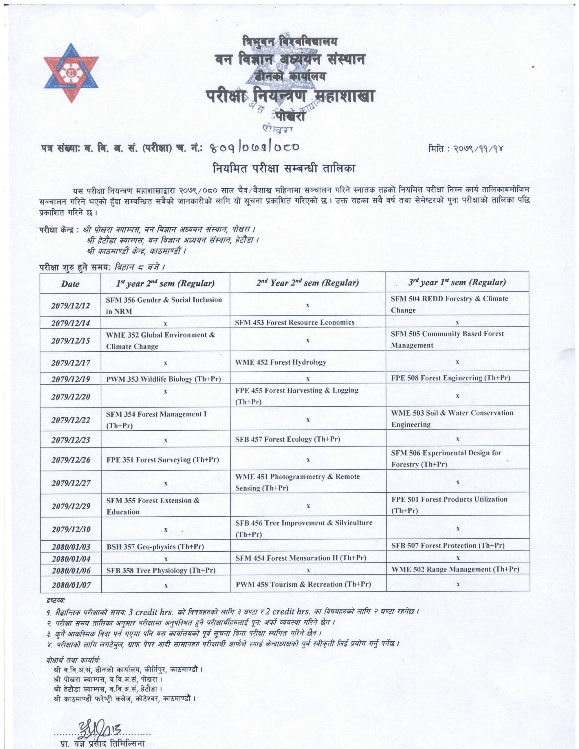 B.Sc. Regular Examination Routine Published (2079/11/14)