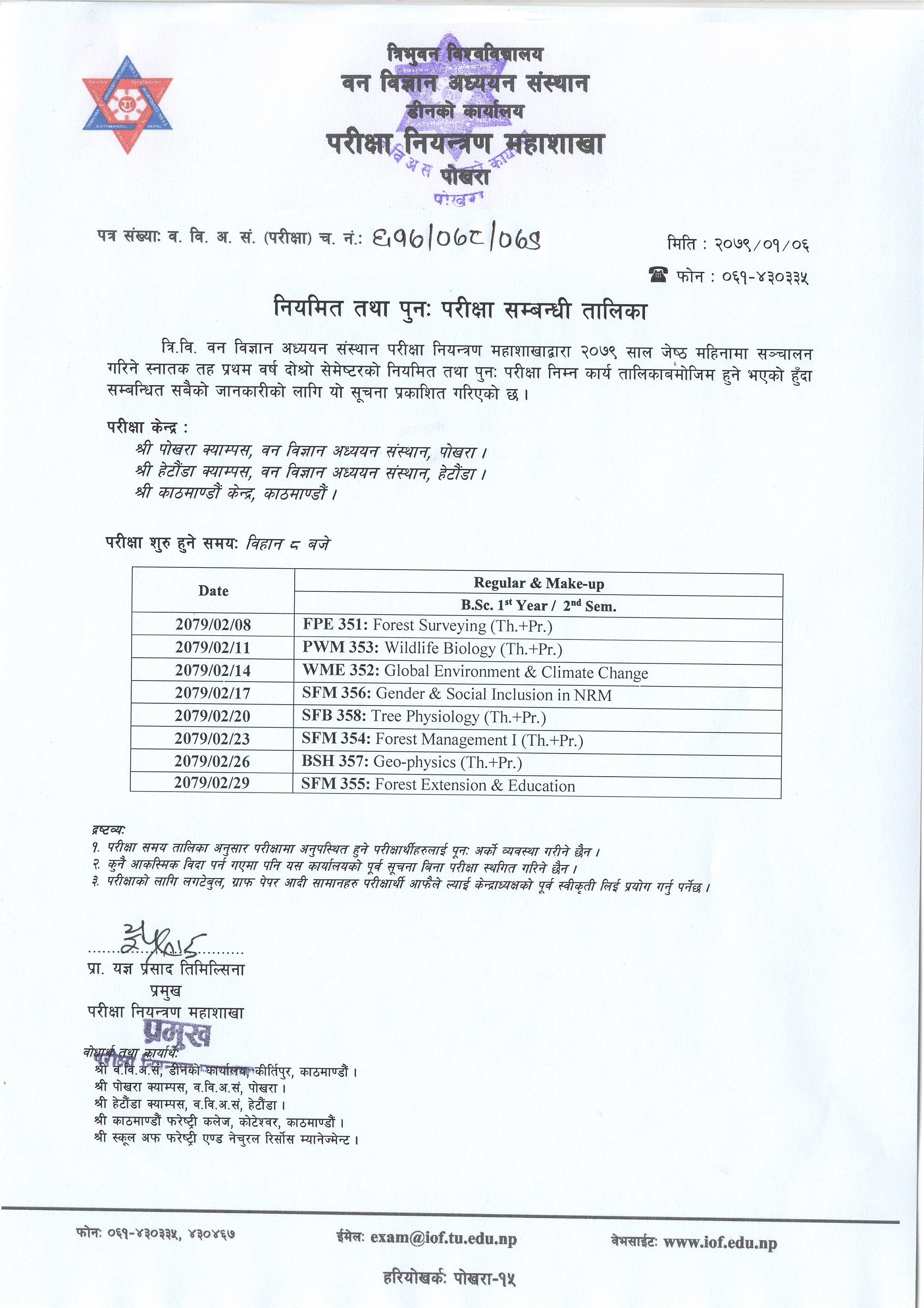 B.Sc. Routine Published for 1st Year 2nd Semester (2079/01/06)