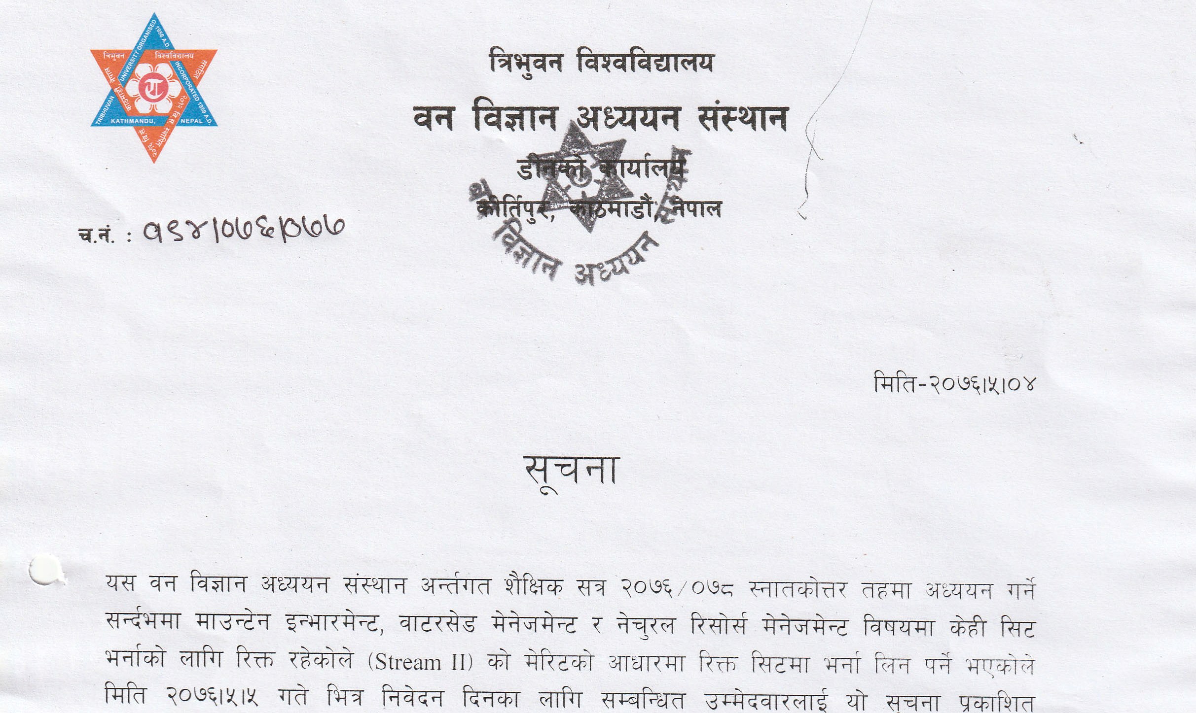 Important: Notice for admission on remaining Seat (2076-05-04)