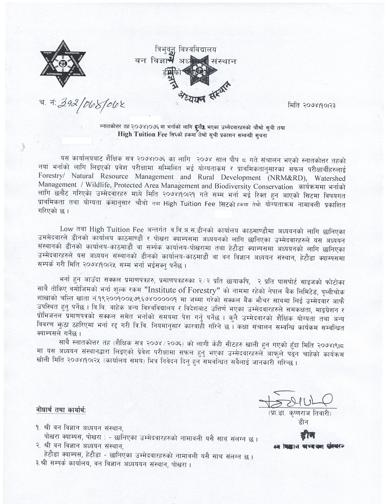 Click here to download Forestry, NRMRD & Wildlife 3rd High Tutition & Forestry 4th General Seats
