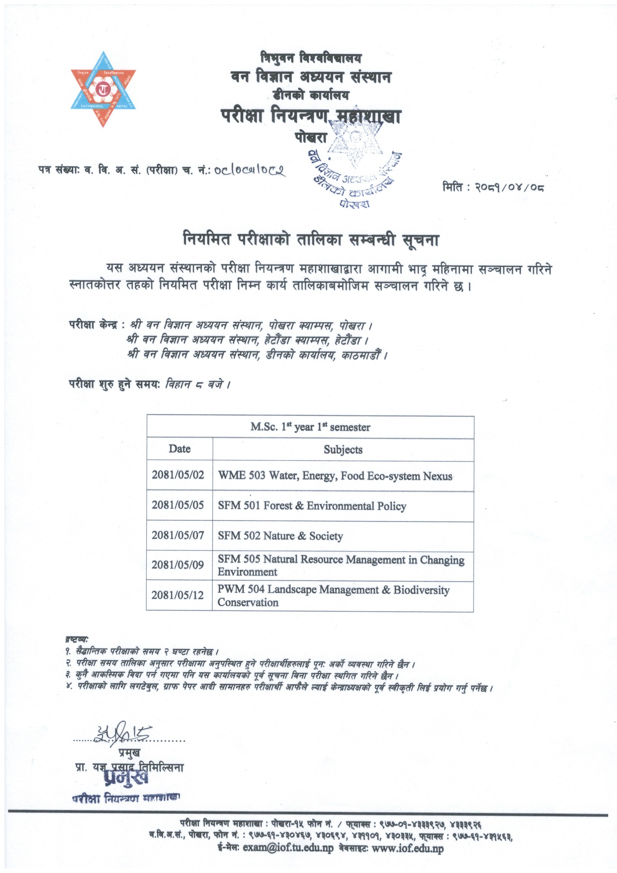 M.Sc. 1st year 1st sem. Routine Published (2081/04/08)