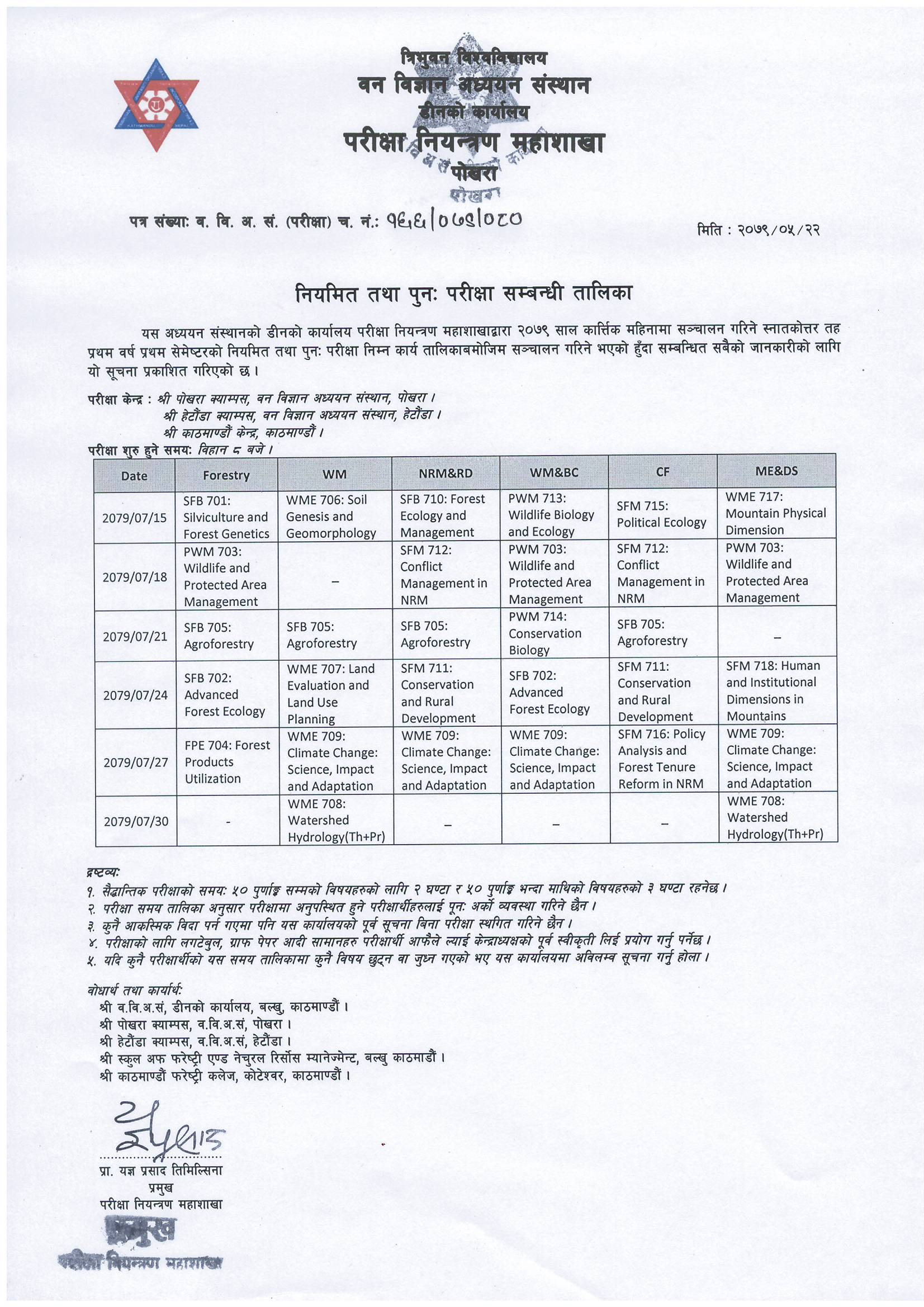 M.Sc. 1st Year 1st Semester Routine Published (2079/05/22)