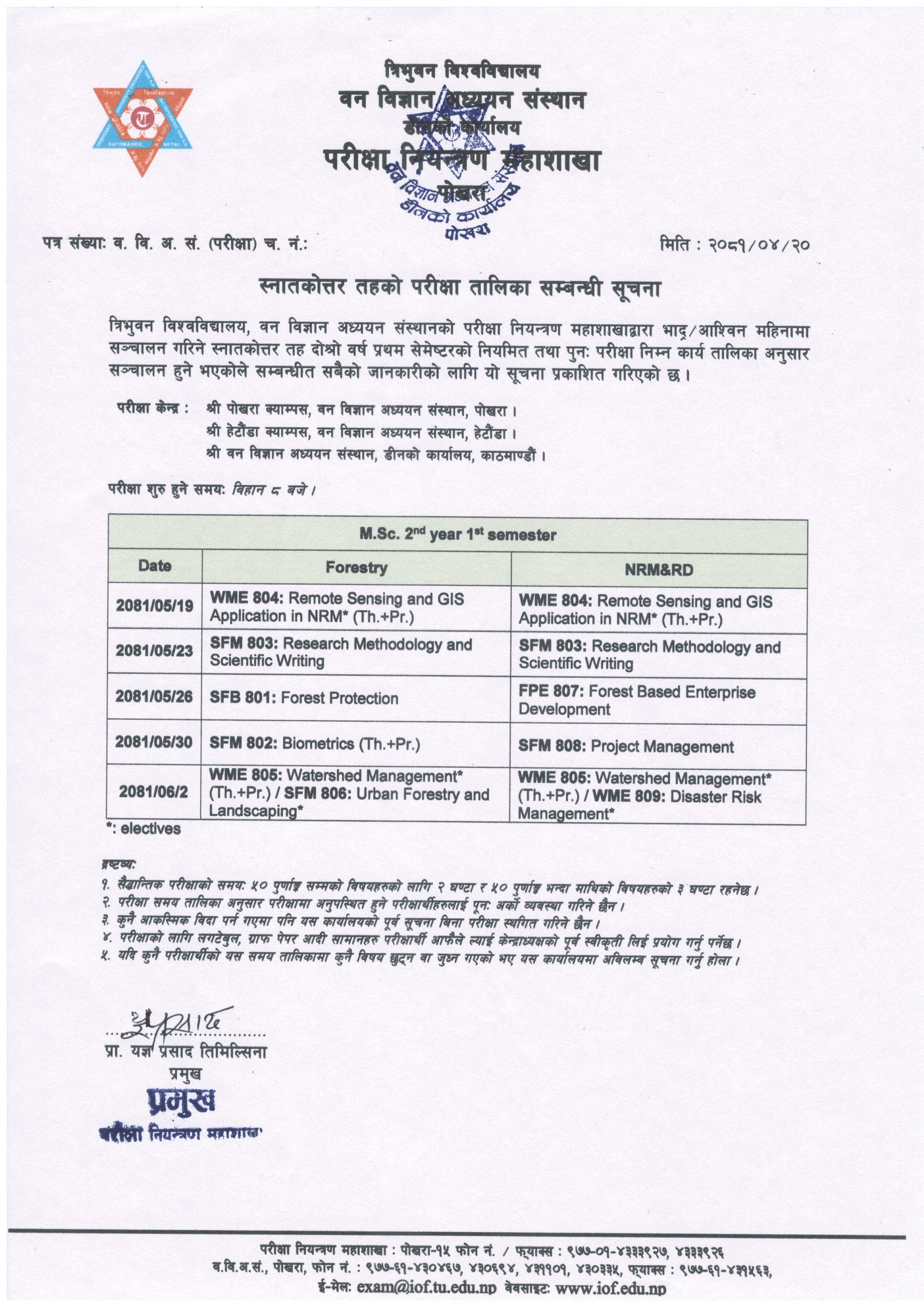 M.Sc. 2nd year 1st sem. routine published (2081/04/20)
