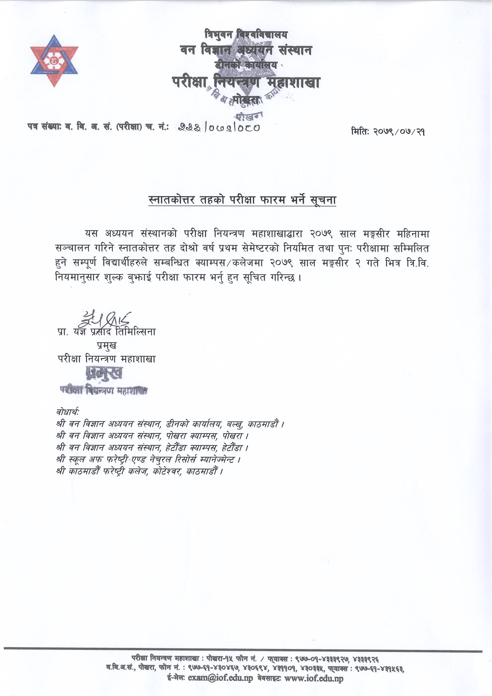 M.Sc. 2nd year 1st semester examination form notice (2079/07/21)