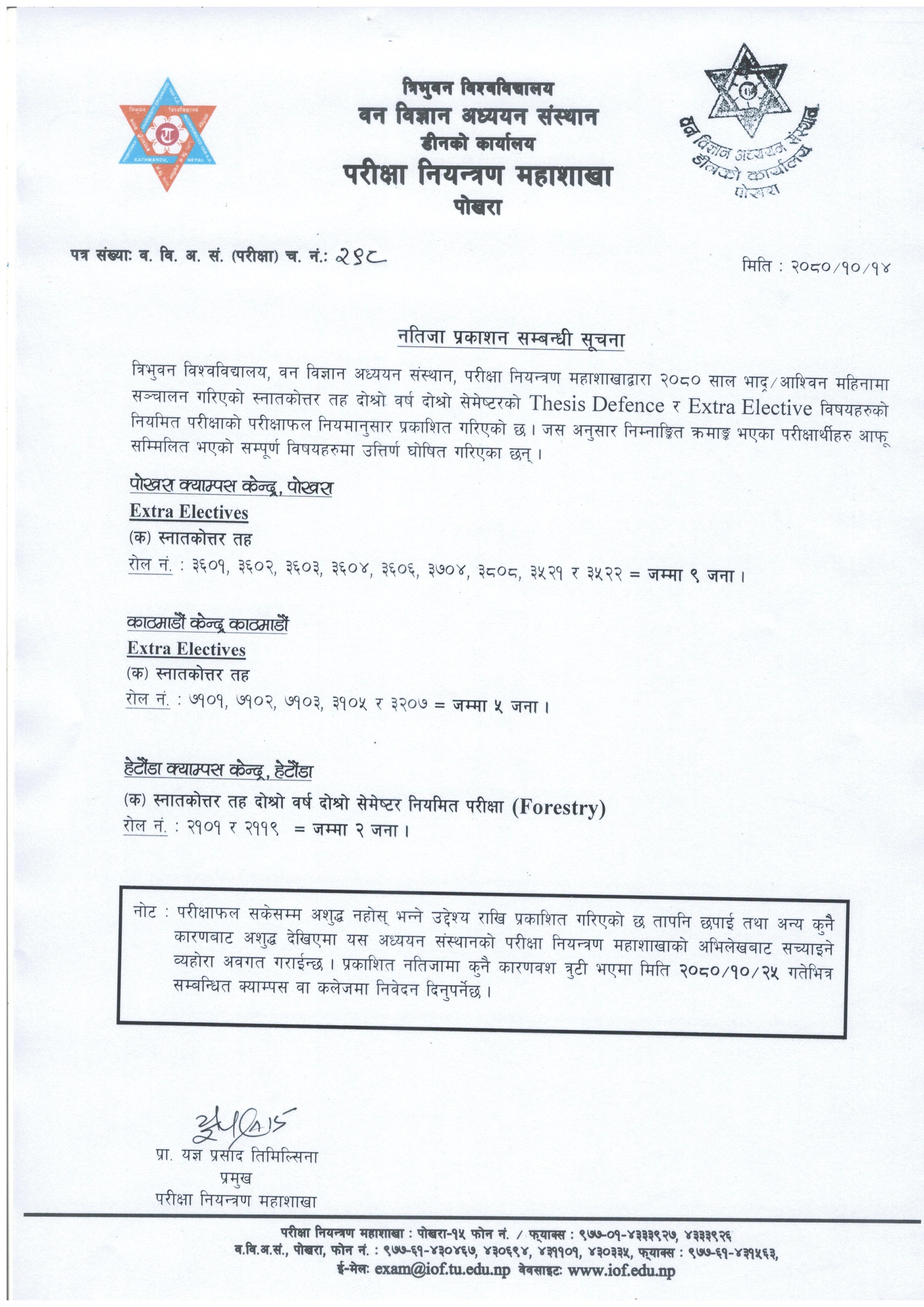 M.Sc. 2nd year 2nd sem. and Extra Electives Result Published (2080/10/14)