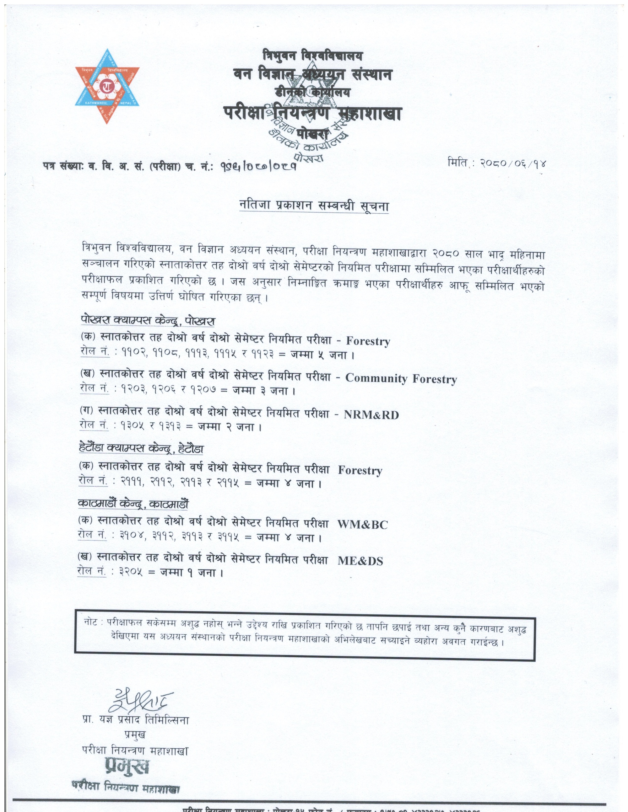 M.Sc. 2nd year 2nd sem. Result Published (2080/06/14)
